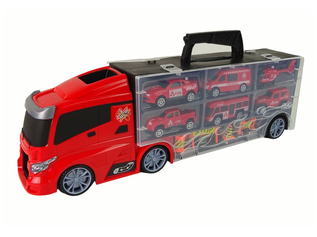 Hasičské nákladné auto je multifunkčné vozidlo, ktoré má v prívese 6 vozidiel. Nákladné vozidlo je vybavené praktickou rukoväťou pre ľahké prenášanie sady z jedného miesta na druhé.