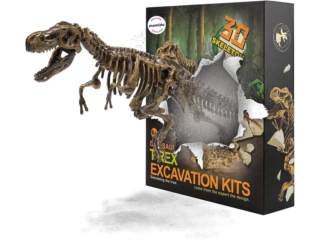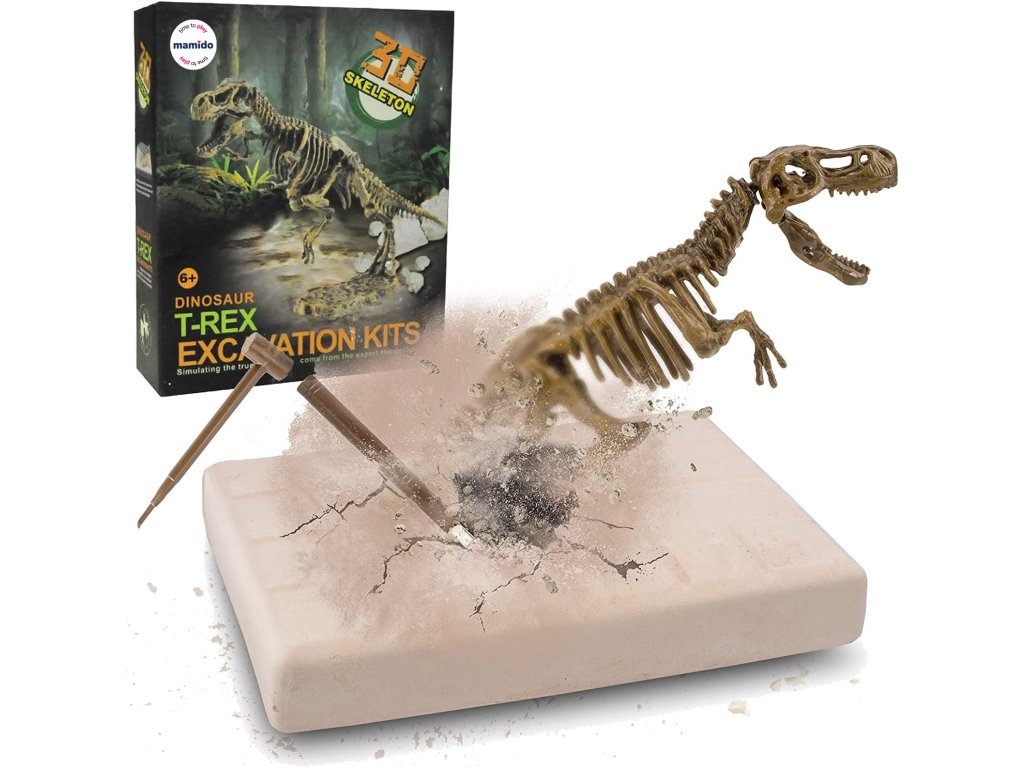 Zábavná archeologická súprava, kde deti môžu pomocou nástrojov postupne odhaliť uložené časti kostry a následne zložiť realistický 3D model T-Rex. Ideálne pre malých bádateľov a fanúšikov dinosaurov – rozvíja trpezlivosť, jemnú motoriku a učí princípy objavovania. Kostra po zostavení stojí samostatne, takže ju možno vystaviť ako dekoráciu do izby.