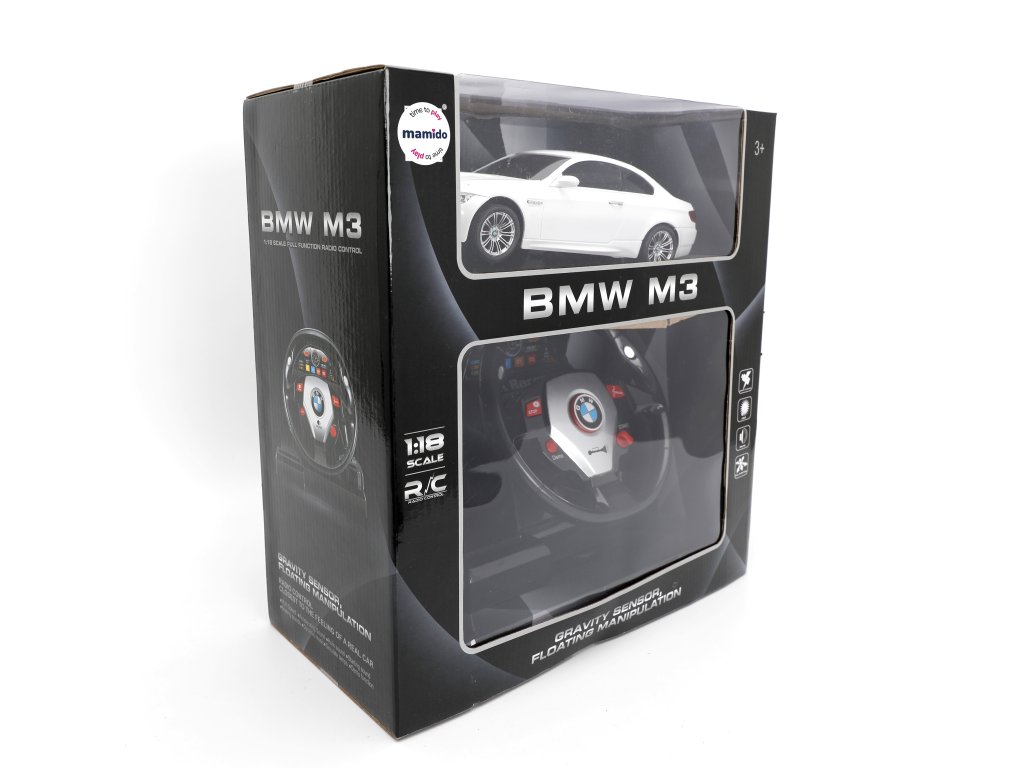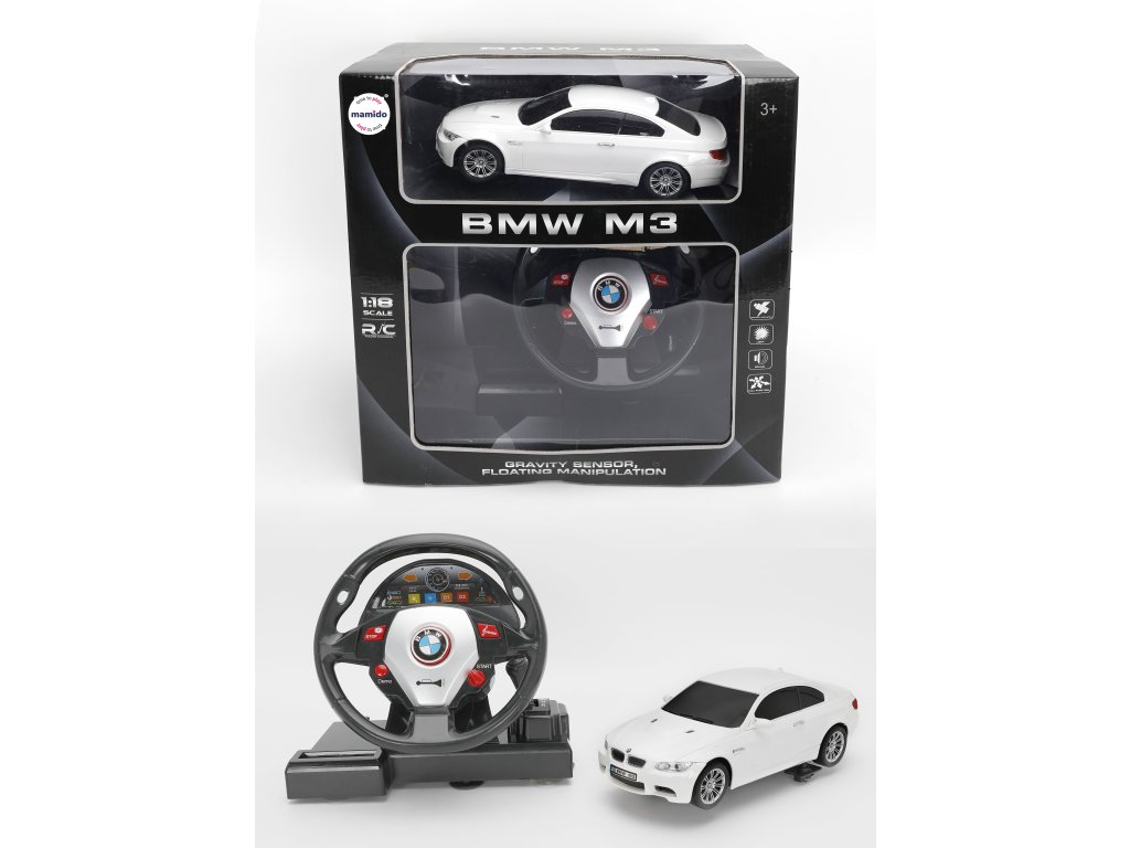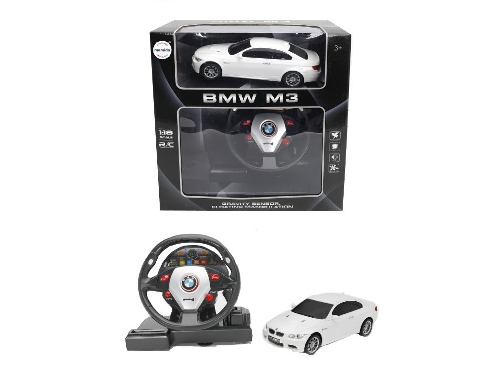 Autíčko na diaľkové ovládanie BMW M3 1:18 s volantom biele MT1327