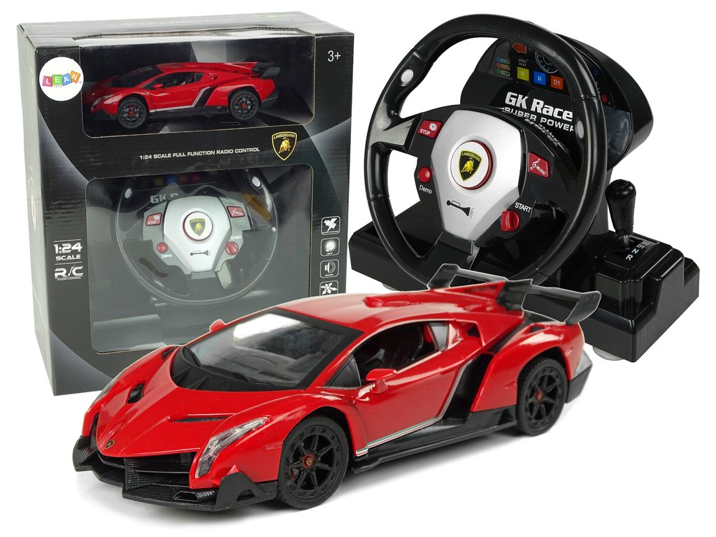 Športové auto na diaľkové ovládanie Lamborghini Veneno nadchne každého fanúšika motorizmu svojim realistickým dizajnom v mierke 1:24 . Ovládač v tvare volantu s prísavkami a svetelnými aj zvukovými efektmi poskytuje zábavný zážitok z riadenia.