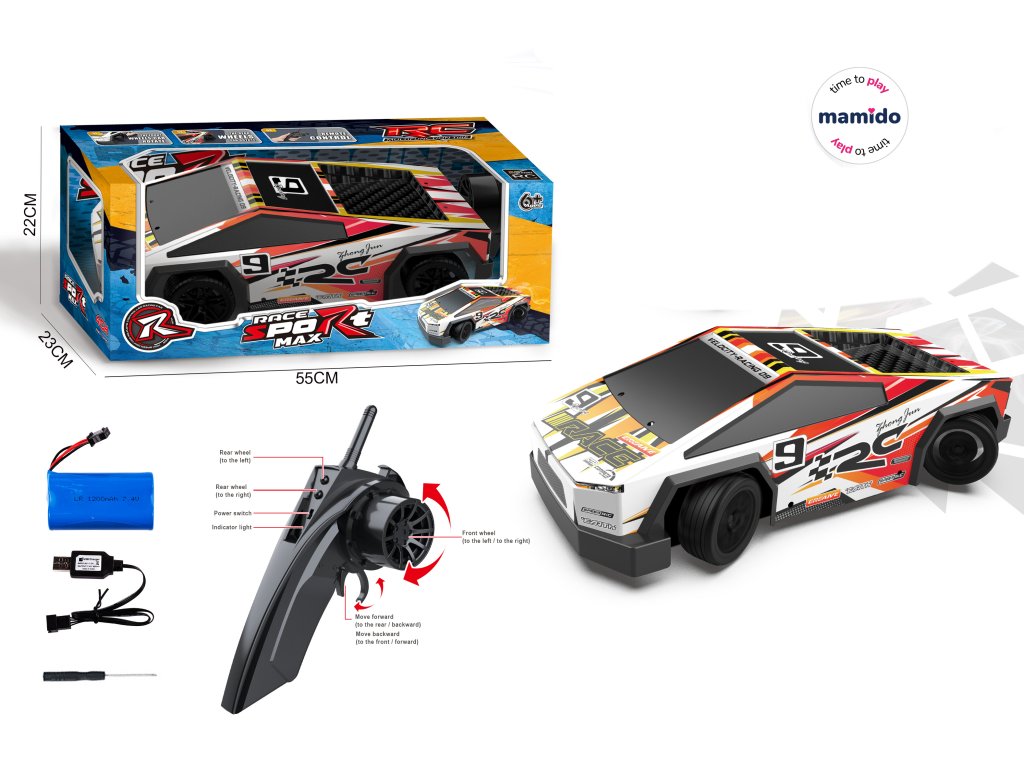 Výkonná dobíjacia batéria 7,4 V 1200 mAh zaisťuje dlhú jazdu a jednoduché dobíjanie pomocou USB kábla. RC auto sa skvele hodí pre domáce preteky aj jazdu vonku na hladkom povrchu.
