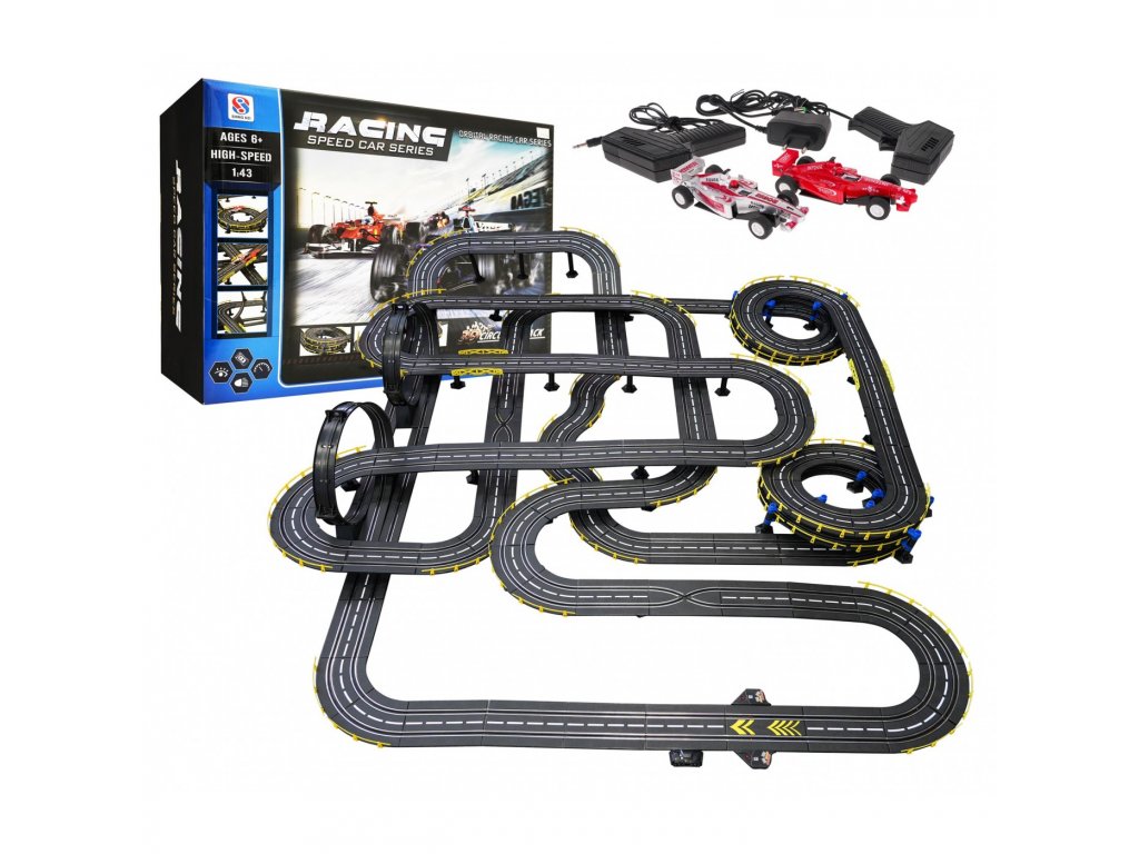 Veľká závodná autodráha má prudké zákruty, rovné úseky s dve 360 ° slučky. Dráha je dlhá 2 800 cm a je vyrobená v mierke 1:43 . Sada je vybavená dvoma autíčkami s gumovými kolesami. Rýchlosť a smer autíčok je možné ovládať pomocou diaľkového ovládača.