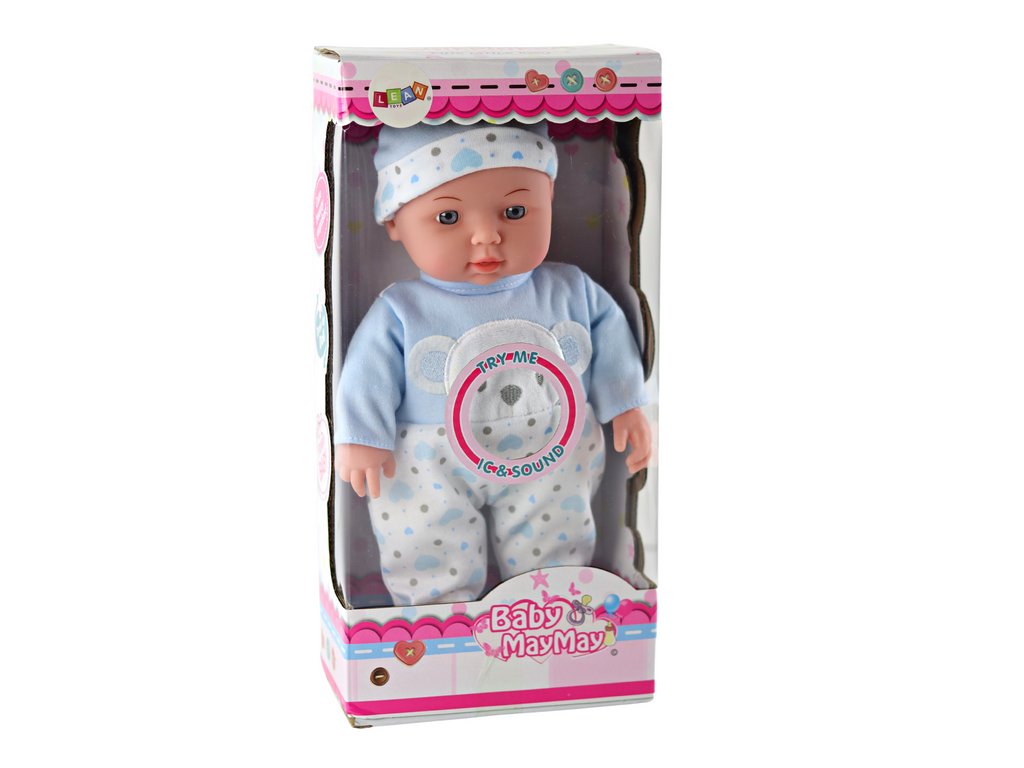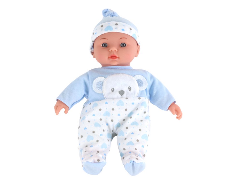 Bábika Bobas v modrej pyžamke s medvedíkom a čiapočkou so zvukmi