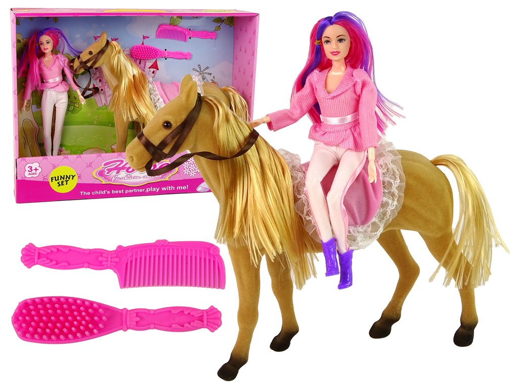 Kôň je vyrobený z materiálu príjemného na dotyk. Figúrka verne reprodukuje skutočný vzhľad zvieraťa. Súčasťou sady je kefa a hrebeň, ktoré umožňujú o koňa starať, česať ho alebo vytvárať krásne účesy na jeho svetlo hnedej, dlhej hrive.