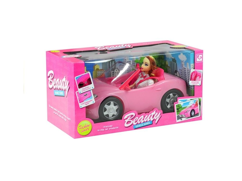 Nablýskané ružové auto s úžasnými doplnkami vyzerá ako naozajstné. Táto hračka je snom každej mladej slečny.
