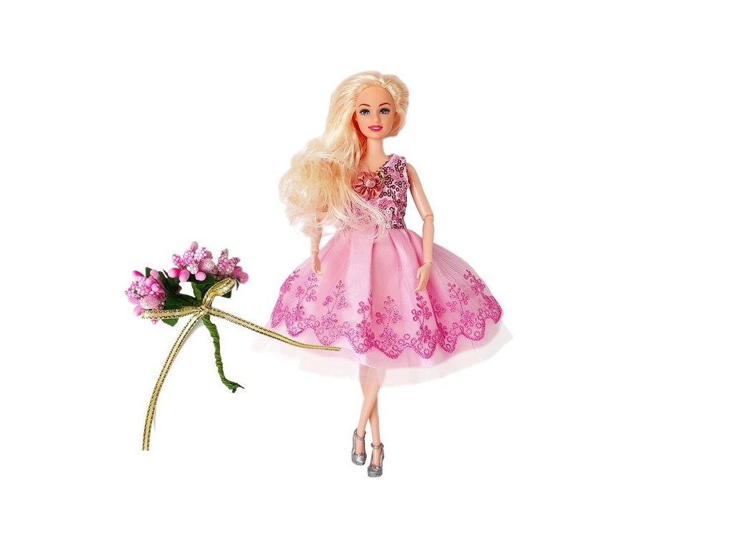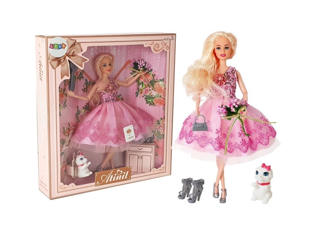 Predstavená sada je skvelým darčekom pre malé dievčatá, ktoré milujú hranie s bábikami a zaujímajú sa o módu. Sada sa skladá z pôsobivého množstvo doplnkov - vnútri je krásna svetlovlasá bábika vo svetle ružových šatách s mašľou. Štýl dodávajú doplnky ako vysoké podpätky, kabelka, hrebeň, pes a kvety. Tvár bábiky zdobí ženský, jemný make-up.