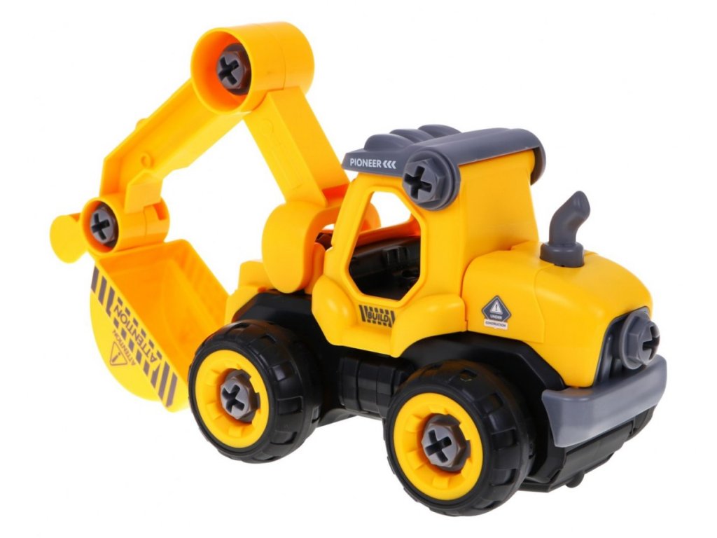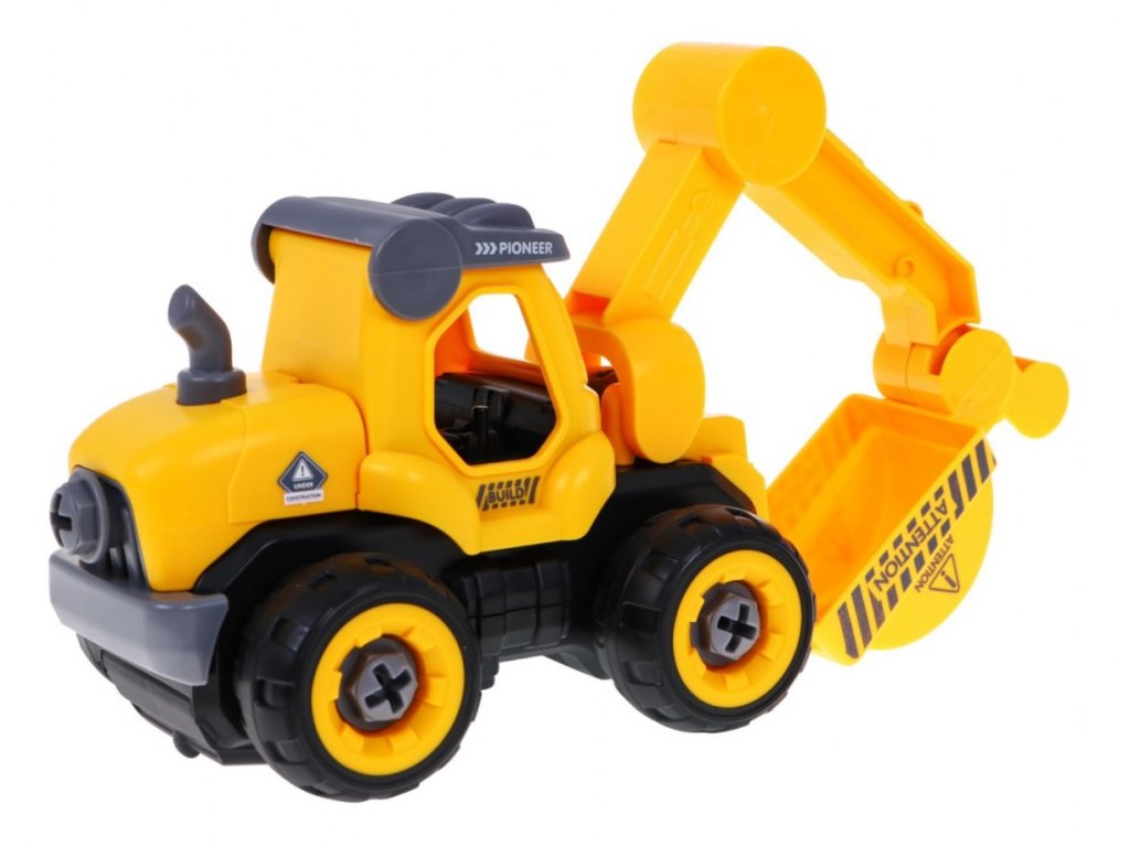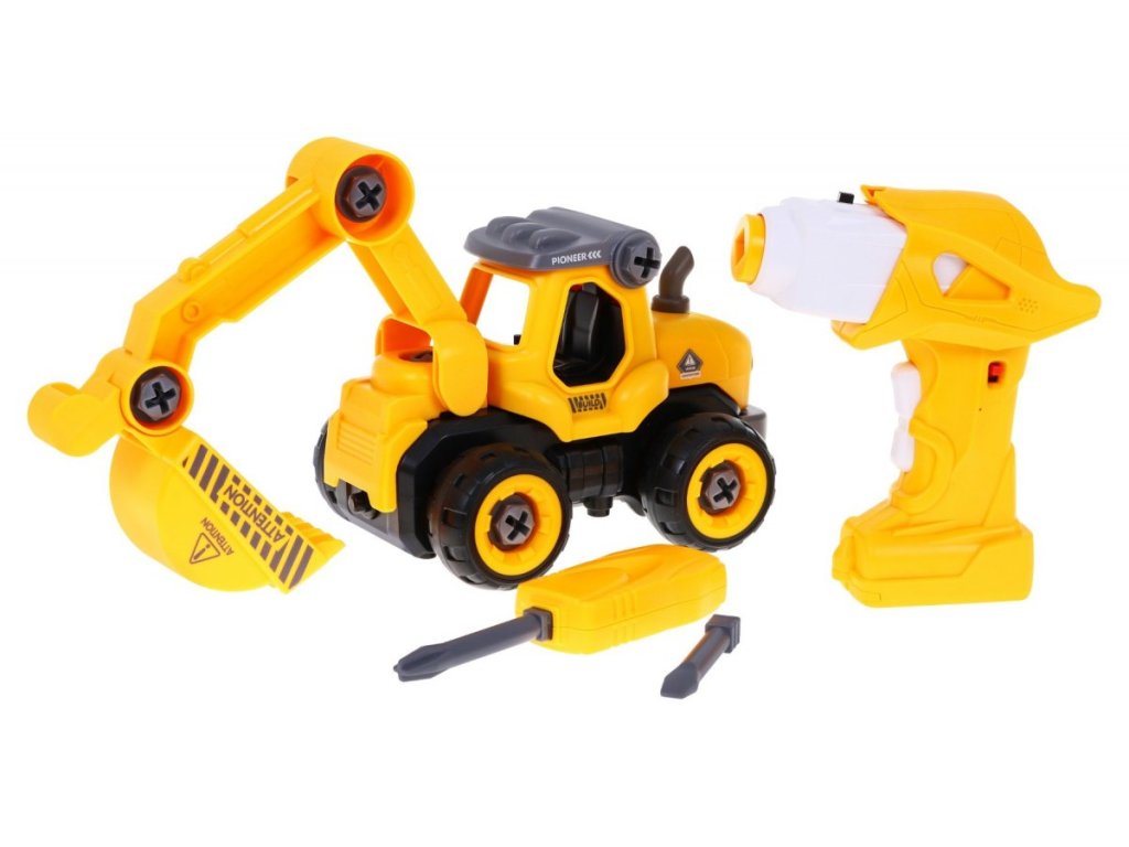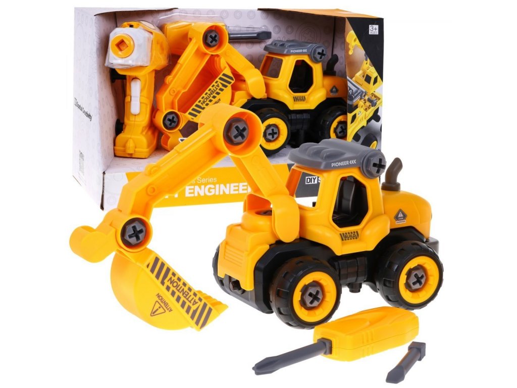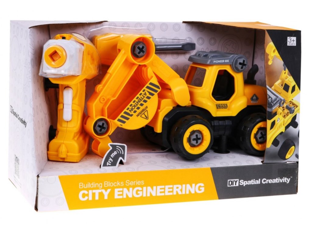 Kreatívna stavebnica sa skladá z 28 dielov. Zostavte bager pomocou vŕtačky na batérie či ručného skrutkovača - sú súčasťou balenia. Po vložení prvku z vŕtačky do bagru, smie bager jazdiť.