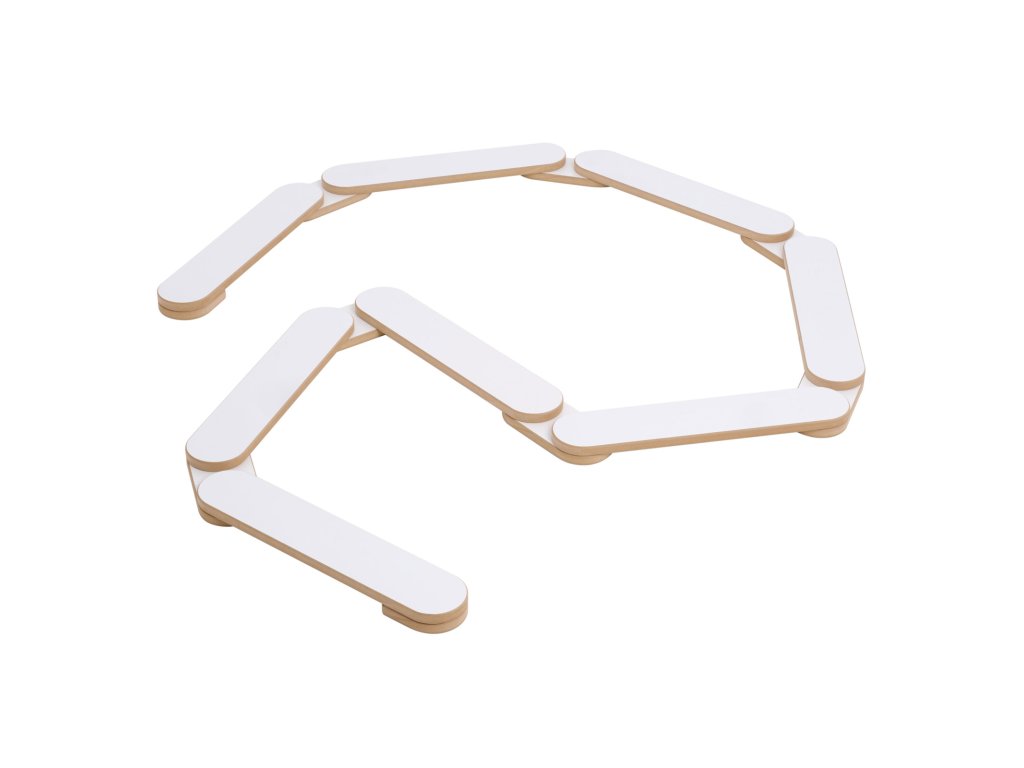 RIVER by Misioo – až 4 metre zábavnej balančnej dráhy pre deti! Súprava obsahuje 8 prvkov, 8 spojovacích dielov a 2 zakončenia, ktoré možno ľubovoľne kombinovať – vytvorte kľukatú cestu alebo jednu dlhú rovnú dráhu.