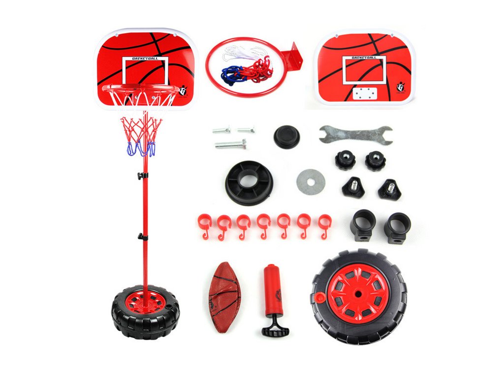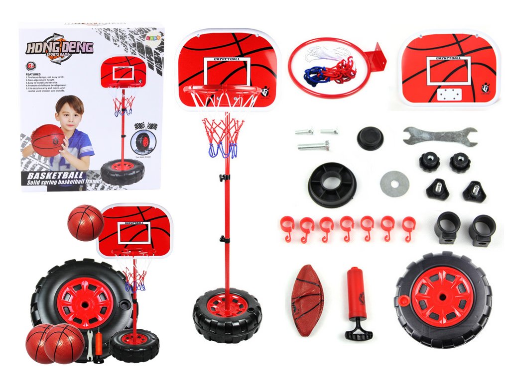 Basketbalový kôš s nastaviteľnou výškou s loptou a pumpičkou