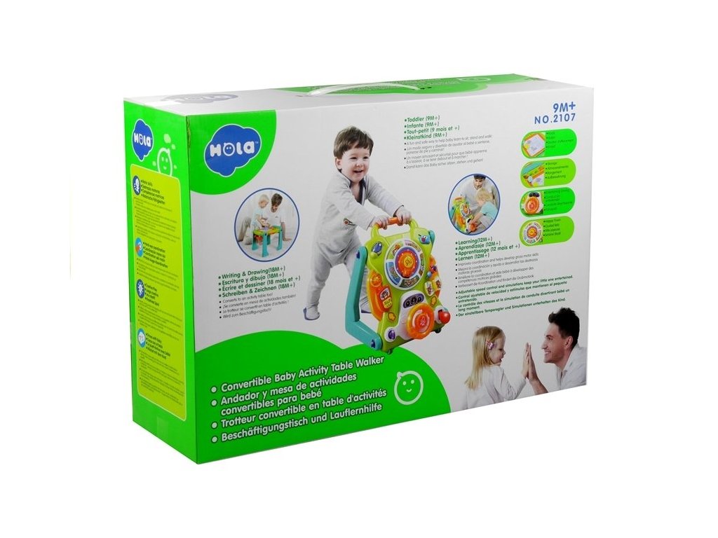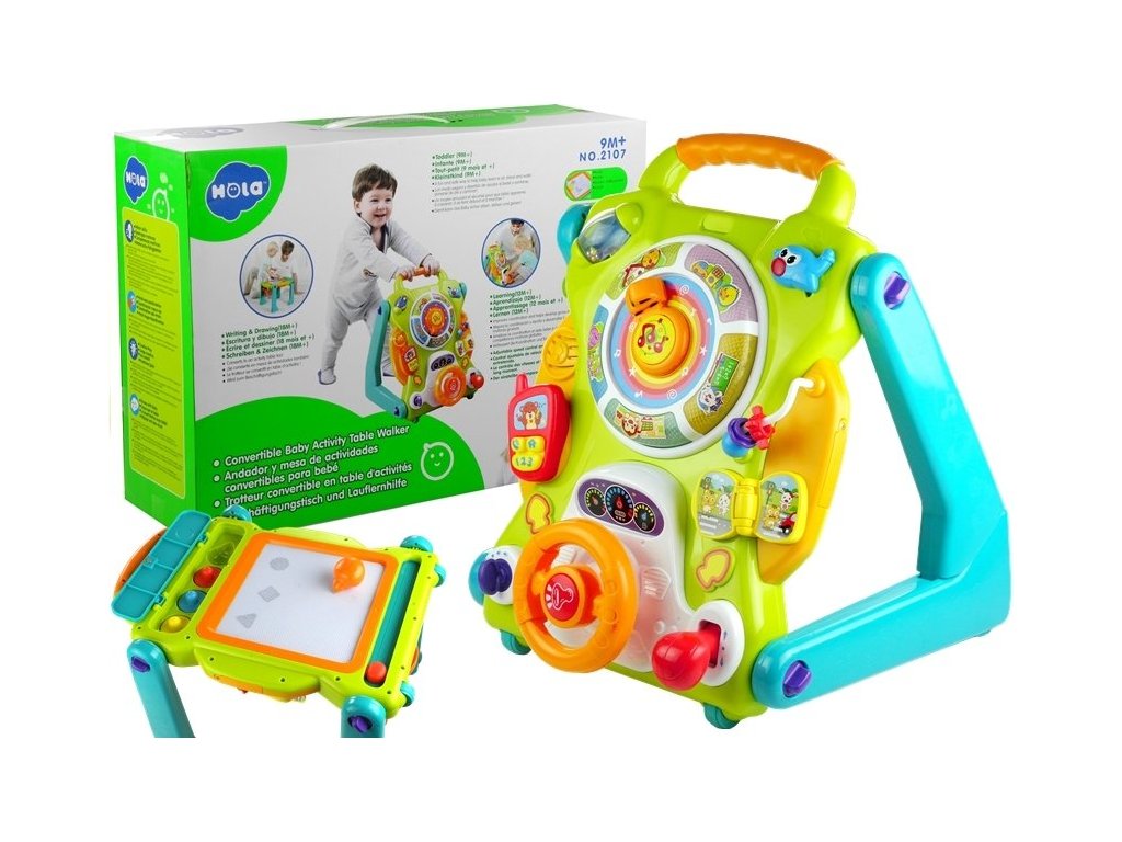 Predstavené chodítko je hračka, ktorá má mnoho funkcií, môže byť interaktívne herné centrum, ktoré pomáha pri vývoji - učenie sa prvých písmen, číslic, slov alebo tvarov. Farebné chodítko je vybavené funkčnými zvukovými prvky a umožňuje - krúženie, otáčanie. Veríme, že táto hračka prinesie aj mnoho radosti batoľatám, ktoré sa hrajú posediačky - podporí ich rozvoj a urýchli učenia samostatnosti.