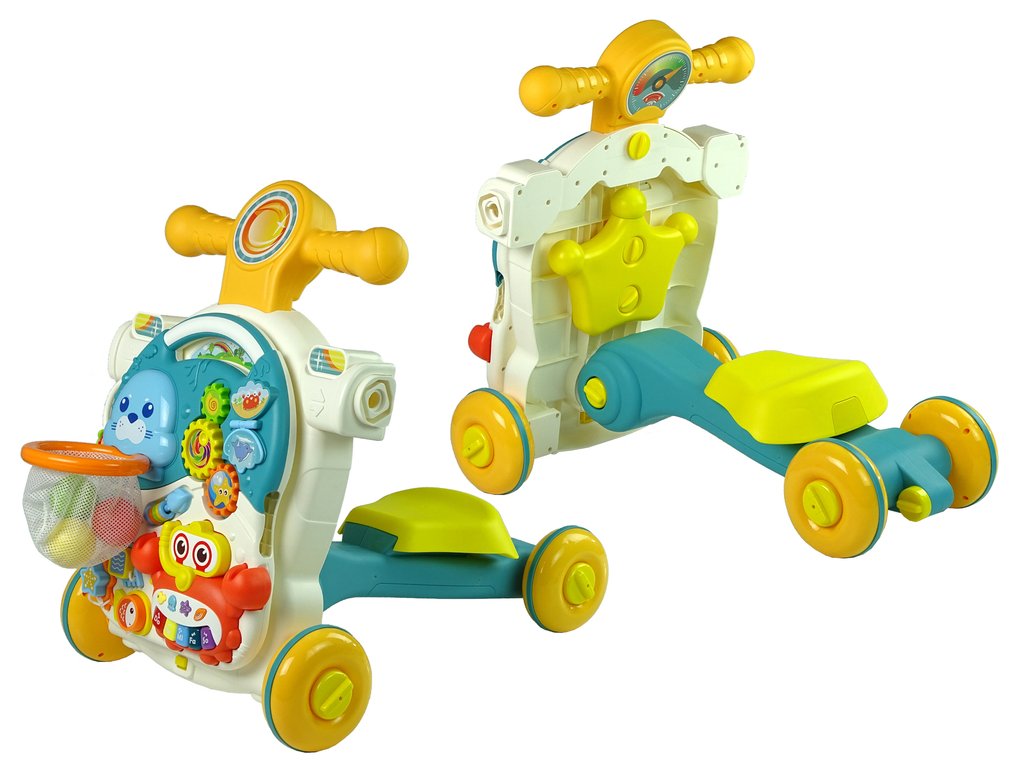 Veľkou výhodou hračky je, že ju možno používať štyrmi rôznymi spôsobmi. Batoľa sa môže rozhodnúť, čo si vybrať. Môže si začať hrať so samotným klavírom, použitý výukový stolček, možnosťou je tiež jazda na bicykli a alebo jazda na kolobežke, ktorá podporuje učenie chôdze. Bezpečná a protišmyková kolieska. Výukové chodítko s interaktívnou zvukovou tabuľou sa veľmi ľahko používa.