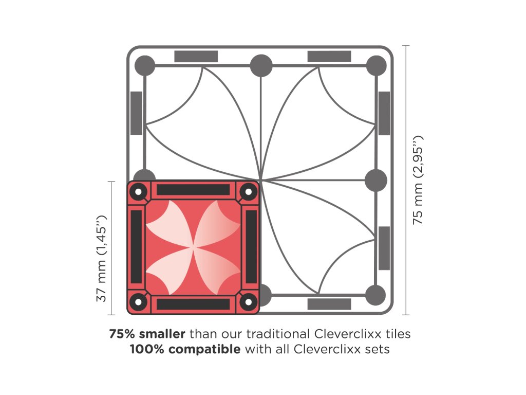 Tato mini sada podporuje rozvoj STEAM dovedností (věda, technologie, inženýrství, umění a matematika) prostřednictvím volné hry. Děti se učí rozpoznávat tvary, stavět stabilní konstrukce a přemýšlet logicky – a to vše hravou formou. Všechny sady Cleverclixx jsou navíc vzájemně kompatibilní, takže Mini Tiles Pack jednoduše doplní jakoukoli stávající sbírku.
