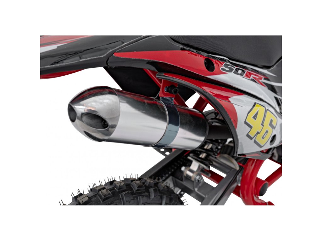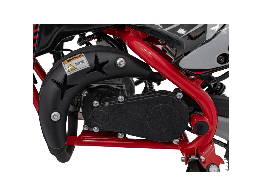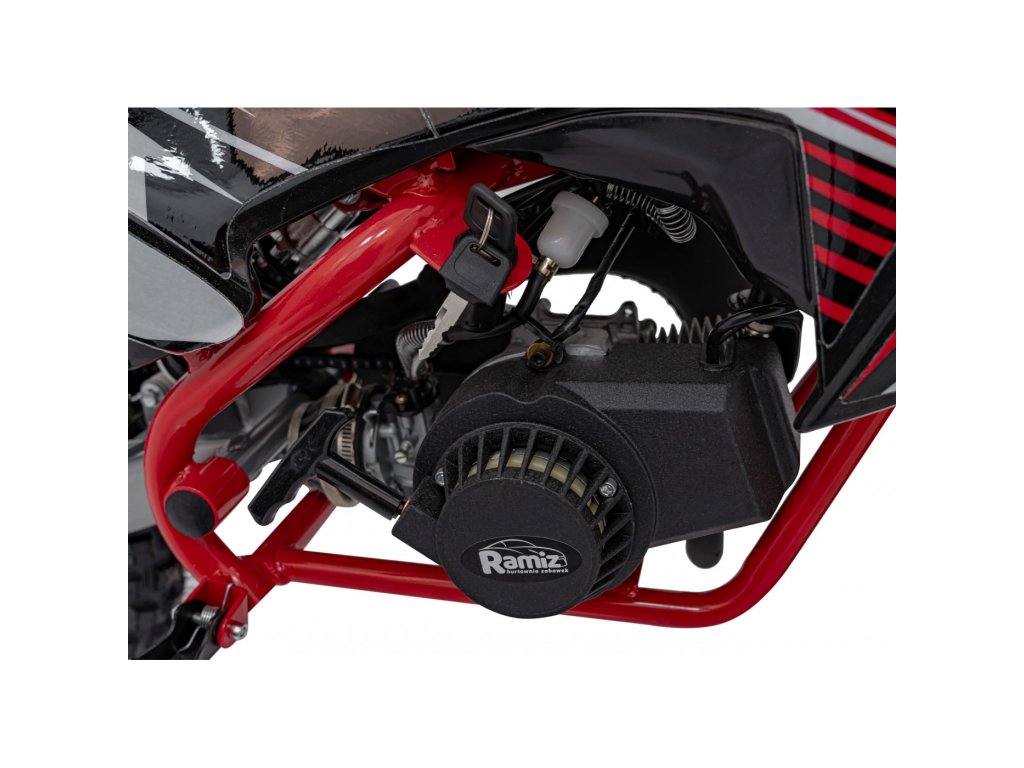 Detská benzínová motorka RENEGADE 50R je vybavená jednovalcovým dvojtaktným motorom a širokými nafukovacími kolesami . Vozítko je vybavené nádržou s objemom 2 litre.