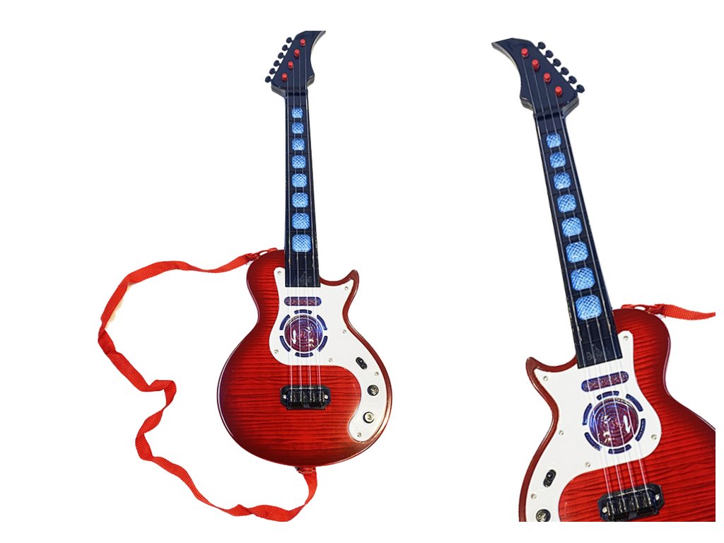 Objavte kúzlo hudby s detskou elektrickou gitarou v živej červenej farbe. Tento ľahký nástroj s farebnými svetelnými efektmi prináša pravú atmosféru priamo do detskej izby. Vďaka predprogramovaným melódiám a jednoduchej manipulácii podporuje rozvoj rytmických schopností aj kreativitu. Ramenný popruh umožňuje pohodlnú hru postojačky, takže sa každý malý hudobník môže cítiť ako skutočná hviezda.