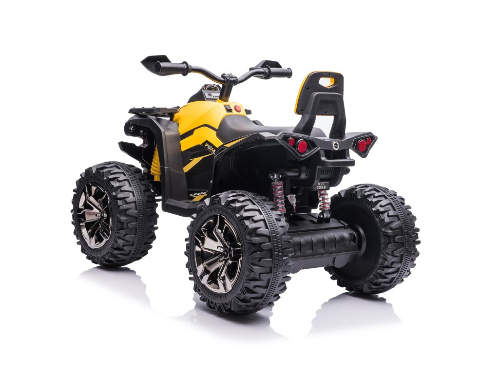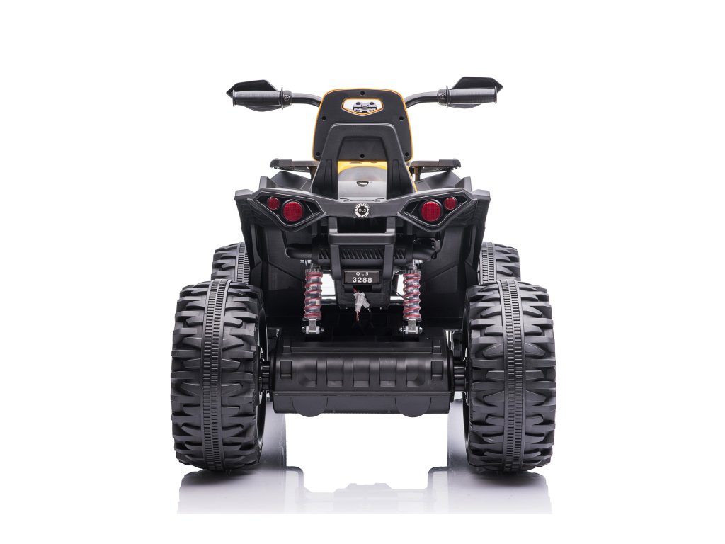 Štvorkolka vás zaujme svojím vybavením ako sú predné LED svetlá a hudobný panel, ktorý má MP3, FM rádio, Bluetooth, vstup pre USB, AUX, SD kartu a tlačidlá s predohranými melódiami a klaksónom. Pri štartovaní budete počuť zvuky motora a vozidlo sa plynule rozbehne aj zastaví.