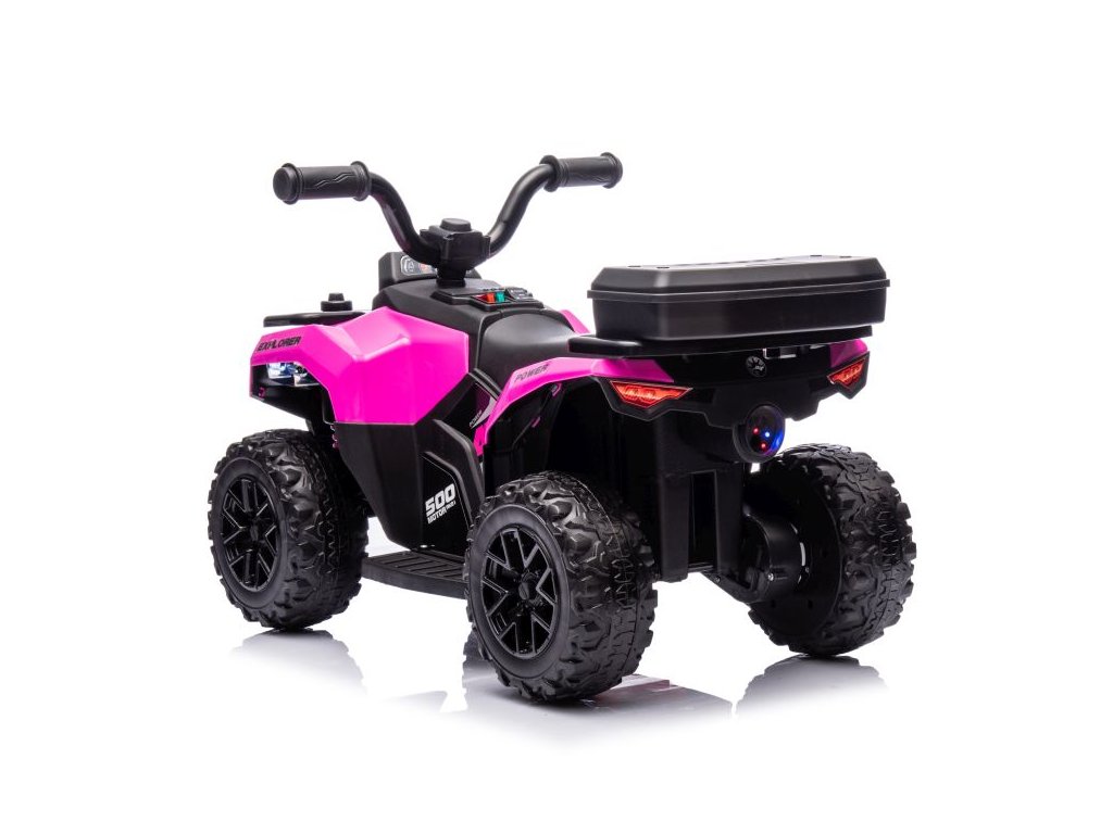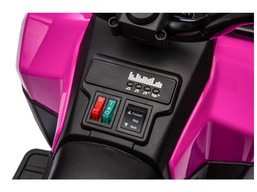 Detská elektrická štvorkolka je vybavená motorom s výkonom 35W a širokými penovými kolesami EVA . Medzi vybavenie patrí hudobný panel . Štvorkolka má predné svetlá a jej nosnosť je do 20 kg .