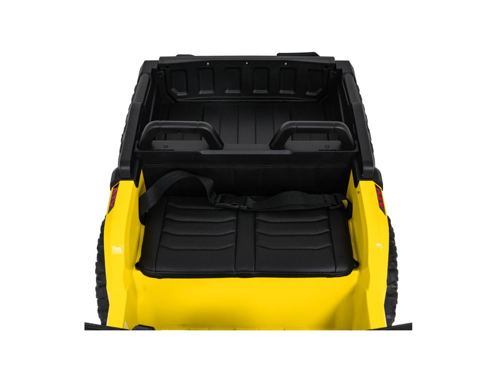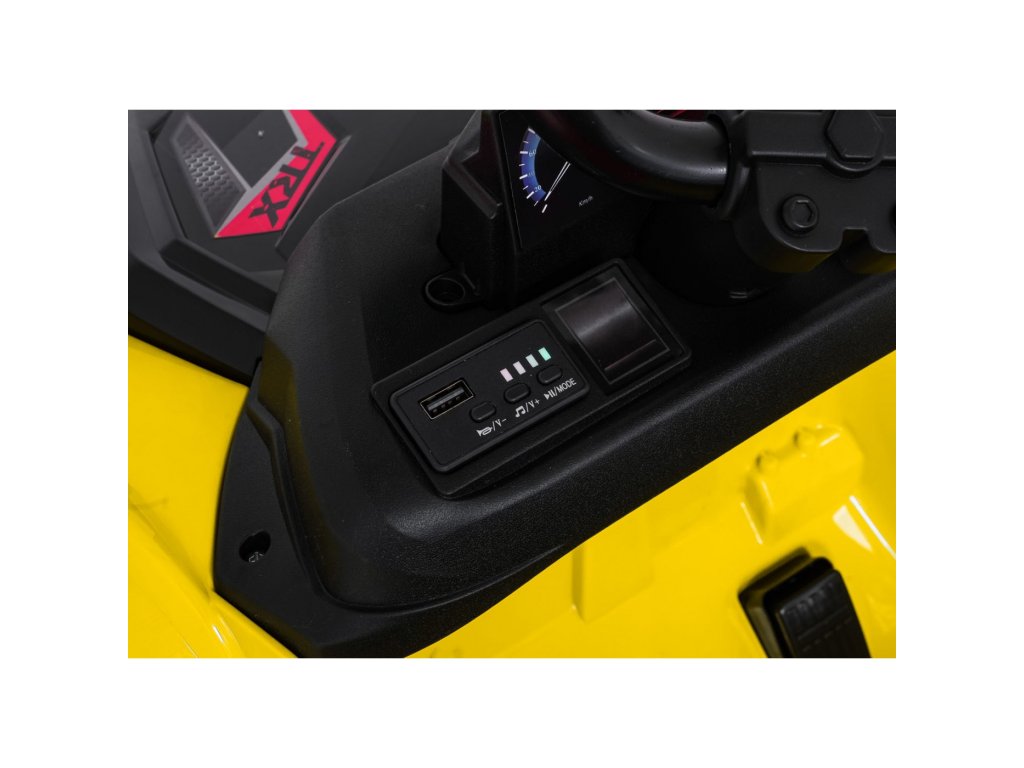 Súčasťou výbavy sú aj predné LED svetlá, otvárateľné dvere a priestranný kufor s rozmermi 42 x 28 x 10 cm. Hudobný panel ponúka MP3 prehrávač, Bluetooth, USB vstup a tlačidlá s melódiami a klaksónom priamo na volante.