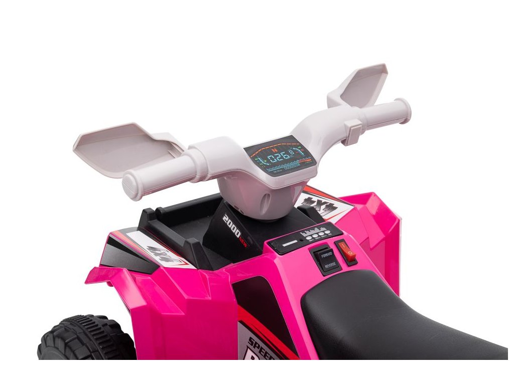 Detská elektrická štvorkolka má motor s výkonom 45W a široké plastové kolesá. Štvorkolka je určená na jazdu na trávniku alebo asfalte a jej nosnosť je do 30 kg.