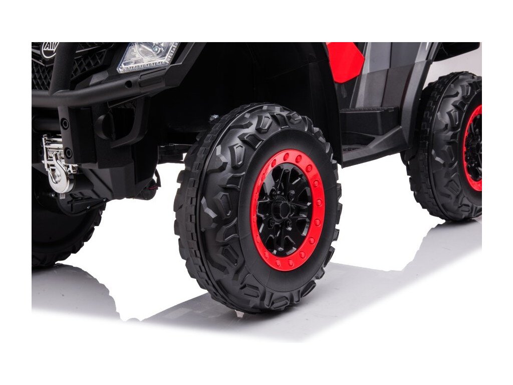 Detská elektrická štvorkolka je vybavená štyrmi motormi o celkovom výkone 320W a širokými penovými kolesami EVA . Štvorkolka hravo zvládne rôzne typy terénu, nespevnený povrch aj kopce.