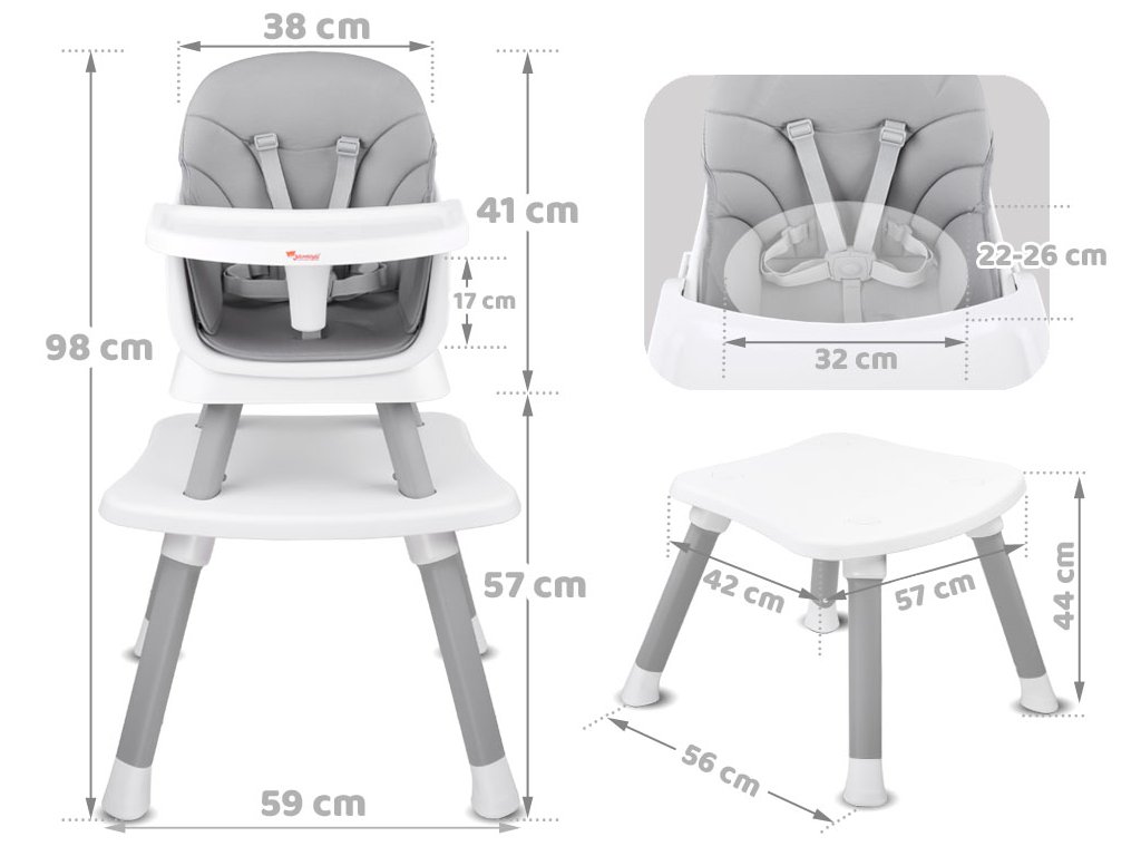 - Vzdialenosť nôh od stola 59 x 56 cm