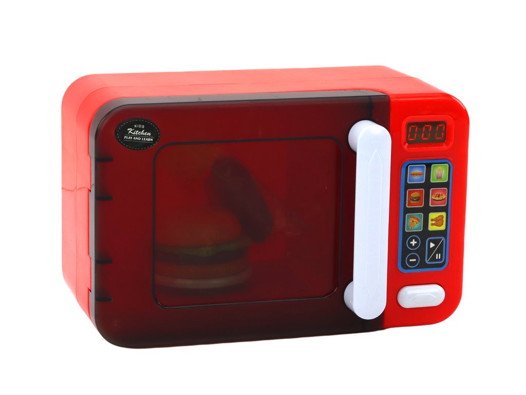 Naša mikrovlnka nie je len hračka – je to interaktívny zážitok, ktorý oživuje domácu hru. Po stlačení tlačidla začne rúra magickú simuláciu varenia. Podsvietený interiér vyzerá ako skutočná mikrovlnka a pohyblivý tanier pridáva na realistickosti. Dieťa môže dokonca otvoriť dvierka, aby vložilo svoje jedlo na ohrev, a po uplynutí času vybrať hotové jedlo. V sade nájdete aj hračky potravín - hamburger, hranolky a hot-dog, ktoré ešte viac obohatia zábavu.