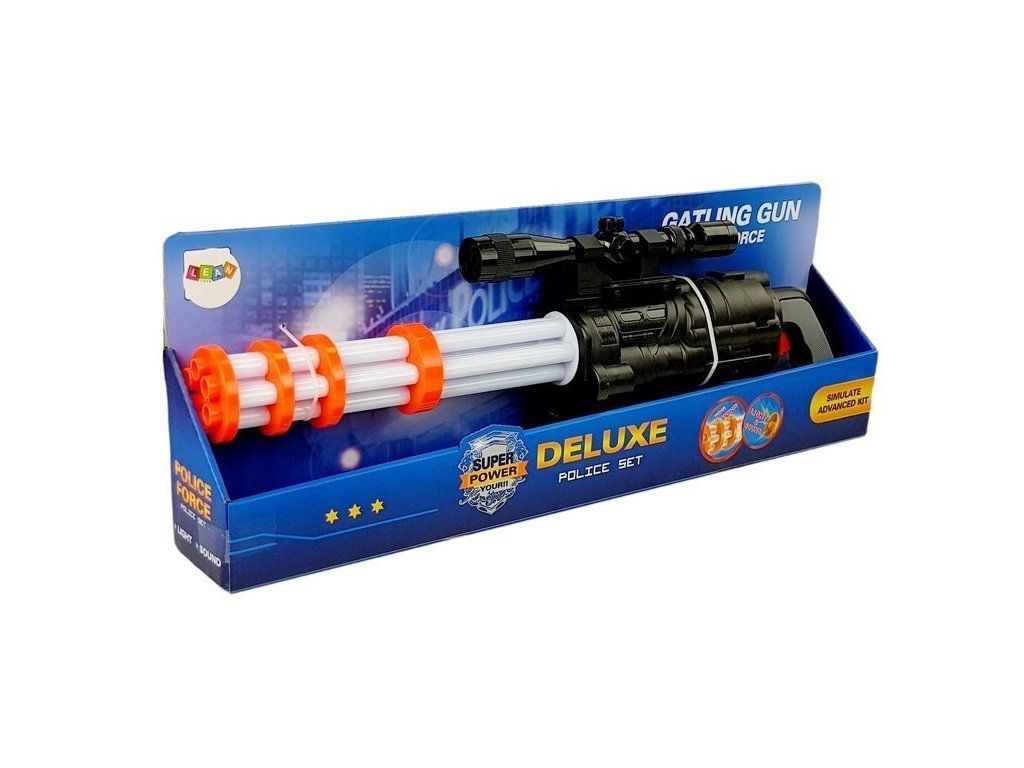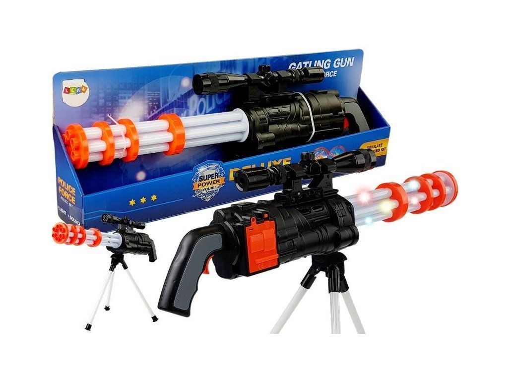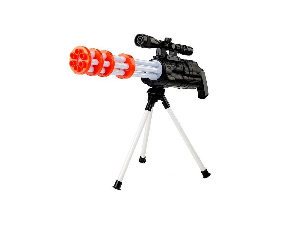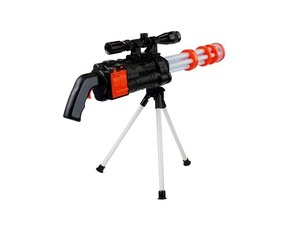 Detská puška na statíve určite zabaví všetky deti na dlhé hodiny. Puška je dodávaná s profesionálnym mierením výstrelu a špeciálnym statívom. Detská zbraň má tiež zvukové a svetelné efekty , ktoré sa aktivujú pri stlačení spúšte.