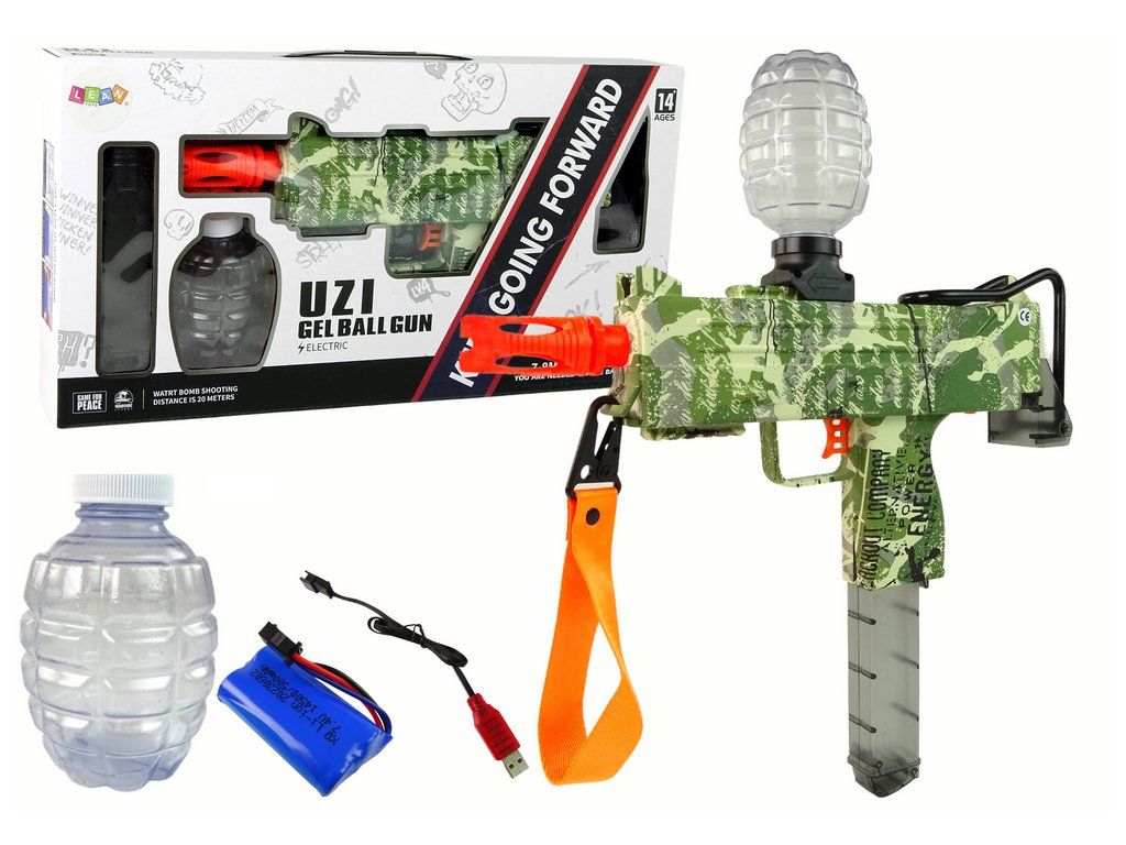 Puška UZI s vodnými gélovými guličkami je interaktívna hračka, ktorá poskytne mnoho hodín zábavy. Ide o model s pôsobivou celkovou dĺžkou 43 cm, čo mu dodáva realistickú estetiku. Dostrel je 20 metrov.