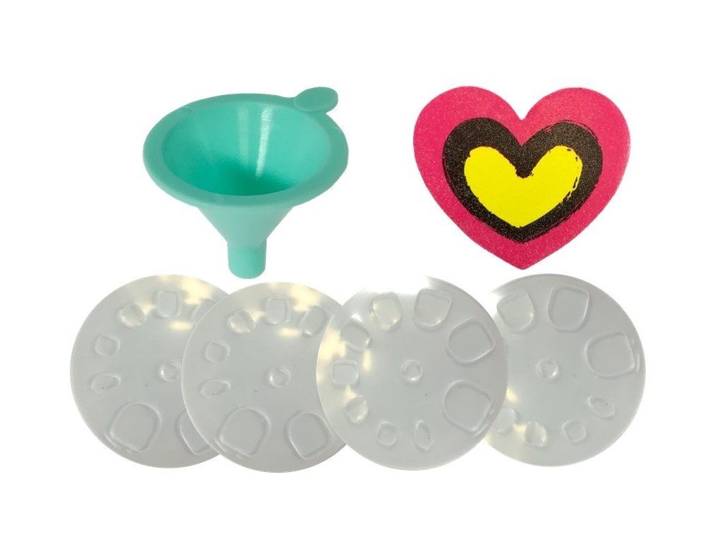 - Stroj na trblietky je napájaný dvoma batériami 1,5 AAA.