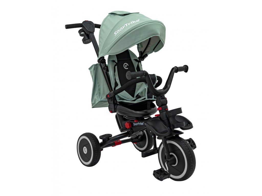 Trojkolka je vybavená EVA kolesami s blokáciou zadných kolies, odnímateľnou strieškou s okienkom a praktickým rodičovským madlom s nastaviteľnou výškou. O bezpečnosť dieťaťa sa stará rozopínateľná ochranná bariéra a nastaviteľné trojbodové pásy s mäkkými chráničmi.
