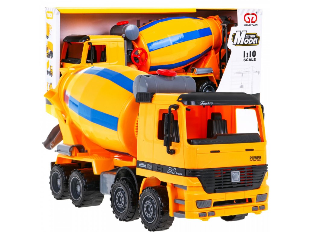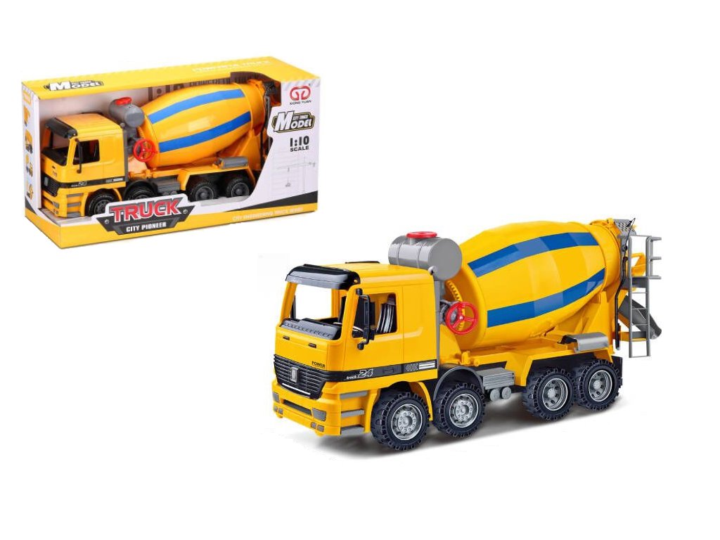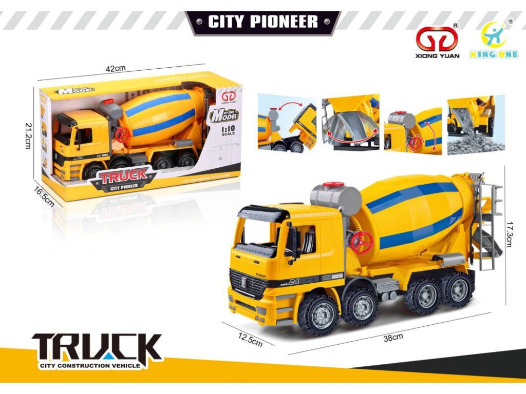 Autíčko miešačka na betón je perfektná hračka pre všetkých milovníkov autíčok. V zadnej časti autíčka je násypka na doplňovanie obsahu bubna a otočný žľab na vypúšťanie nákladu. Kabínu autíčka ide nakloniť dopredu. Miešačka má pohyblivý bubon, takže ide otáčať pomocou kolieska na boku.