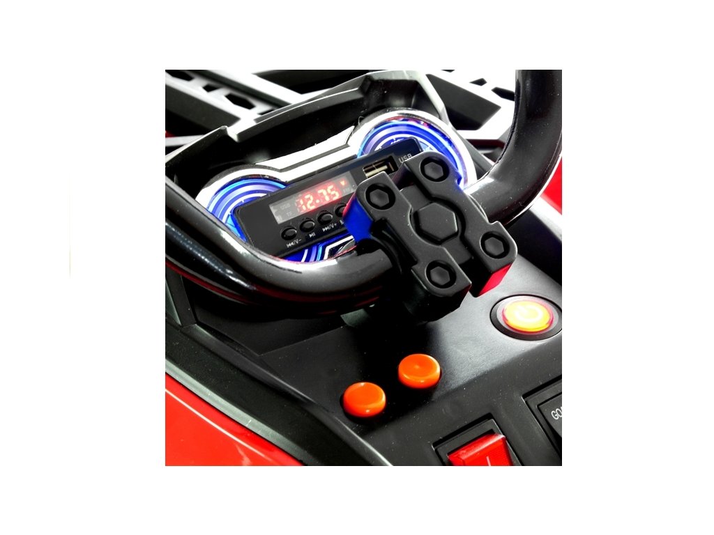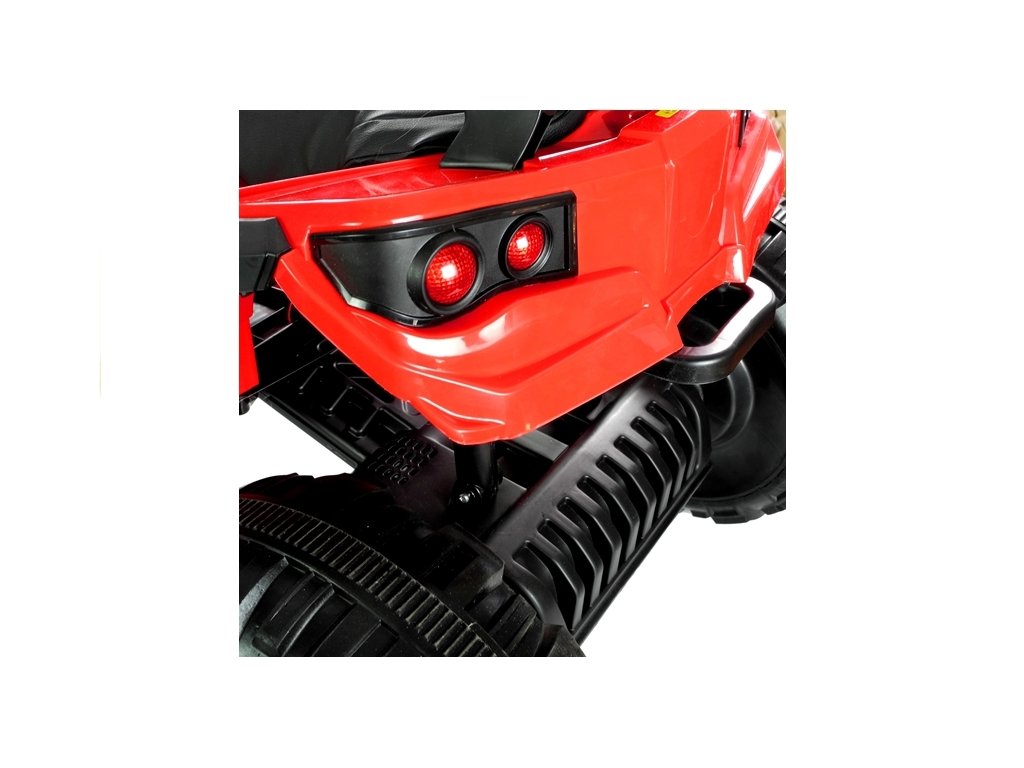 Veríme, že materiál najvyššej kvality v kombinácii s mohutnou a veľkou konštrukciu uspokojí vkus najmladších používateľov. Športový dizajn a štýl vychádzajúci z pretekárskych vozidiel povzbudí dieťa k aktivite. Čo ďalšie toto zariadenie má? Diaľkové ovládanie 2,4 G, svetlá umiestnené v prednej časti a skutočné chrómované prvky. Mäkké sedadlo z ekologickej kože, gumová kolesá, tlmiče a elektrická brzda nielen zvýši pohodlie pri používaní detskej štvorkolky, ale aj jej bezpečnosť.