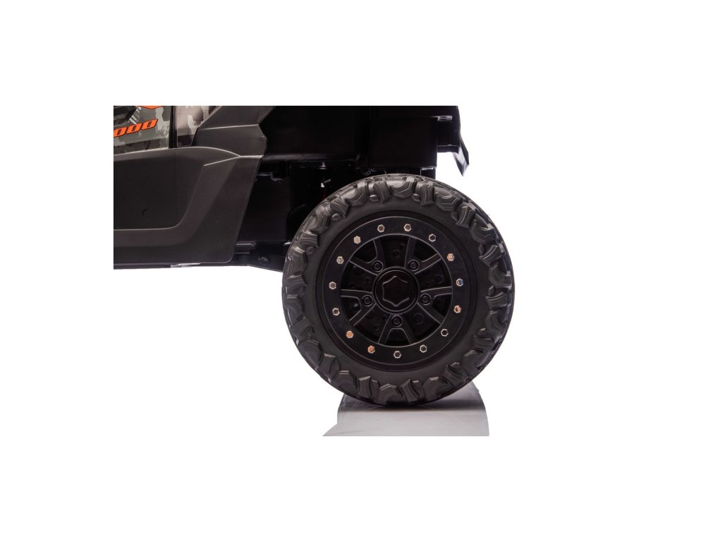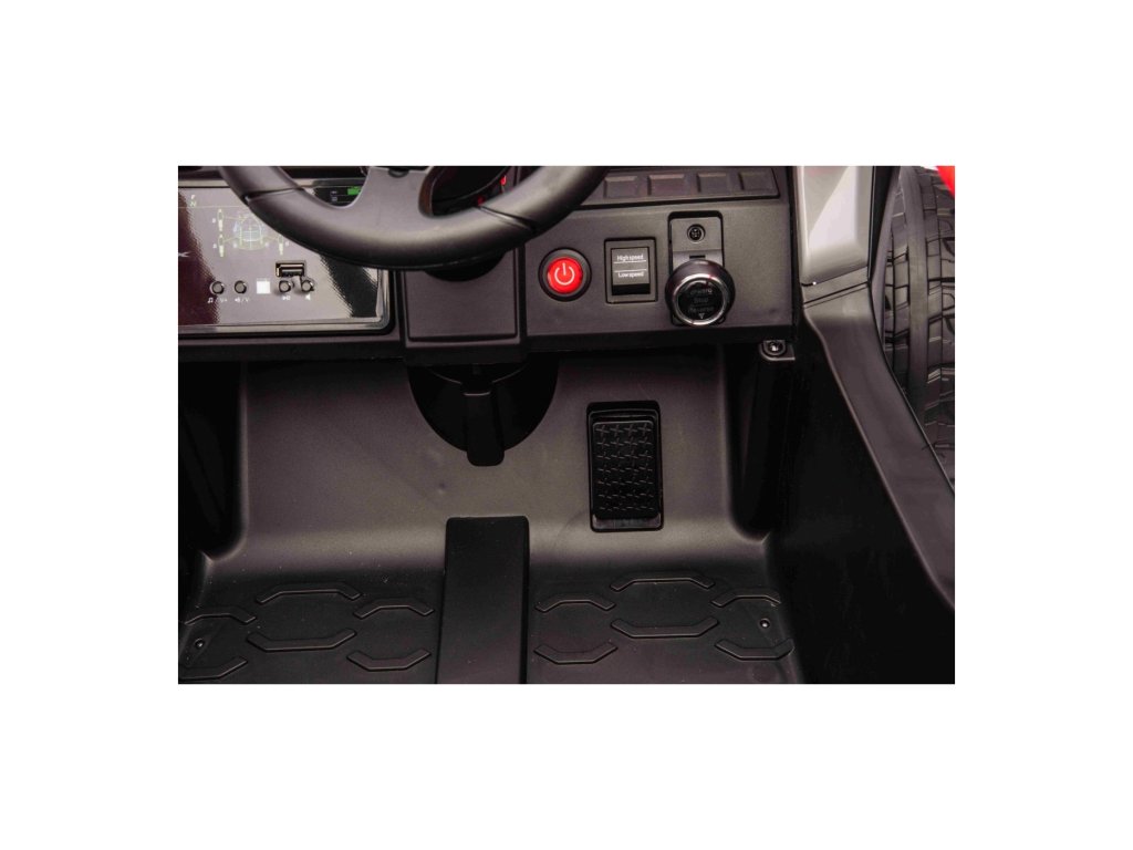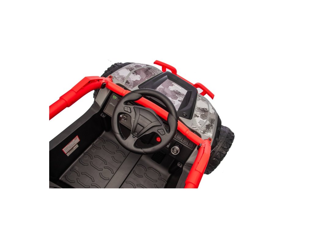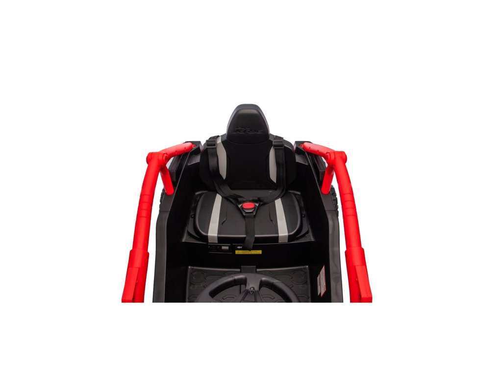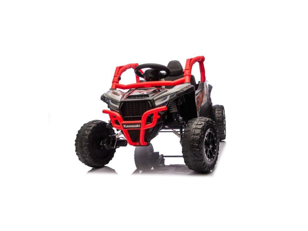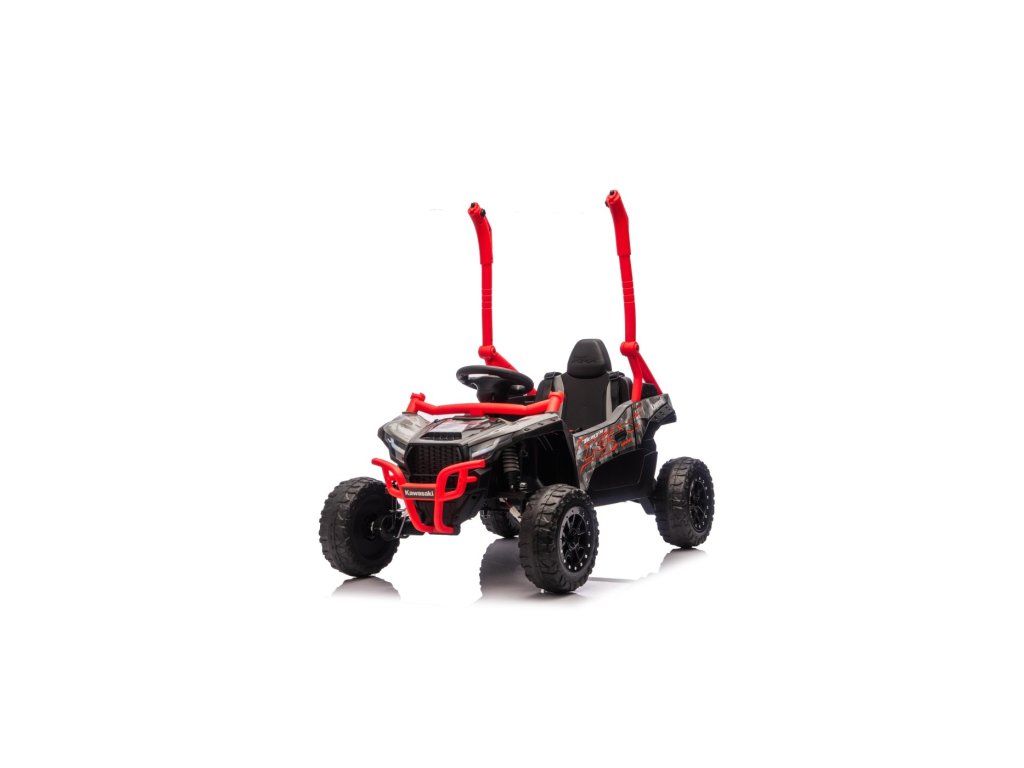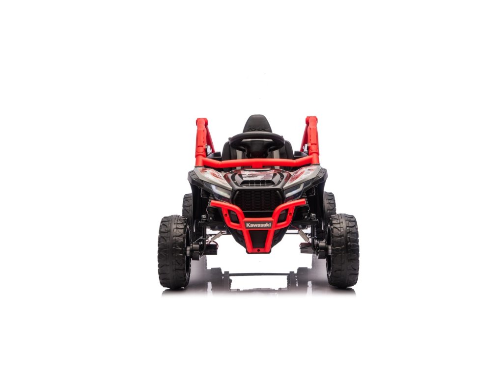 Štýlové detské vozítko Buggy Kawasaki TERYX KRX1000 je ideálnou voľbou pre malých vodičov, ktorí milujú jazdu v teréne aj na hladkom povrchu. Výkonný 24V systém so štyrmi motormi (2× 20W vpredu, 2× 45W vzadu) zabezpečí dostatok sily aj pre nerovný terén. Vozítko je vybavené mäkkými EVA kolesami, pohodlným koženým sedadlom a bezpečnostnými pásmi. Vďaka diaľkovému ovládaniu s funkciou STOP majú rodičia vozítko vždy pod kontrolou. Výbava zahŕňa LED svetlá, audio panel s Bluetooth, MP3, USB vstupom a ďalšími funkciami.
