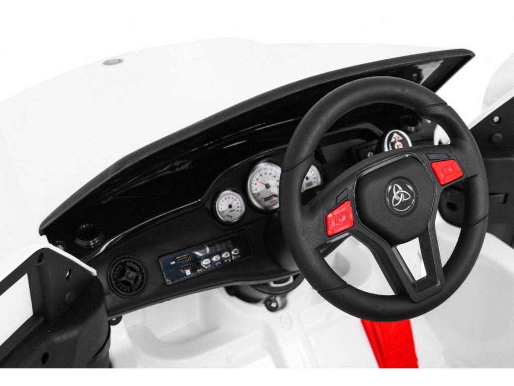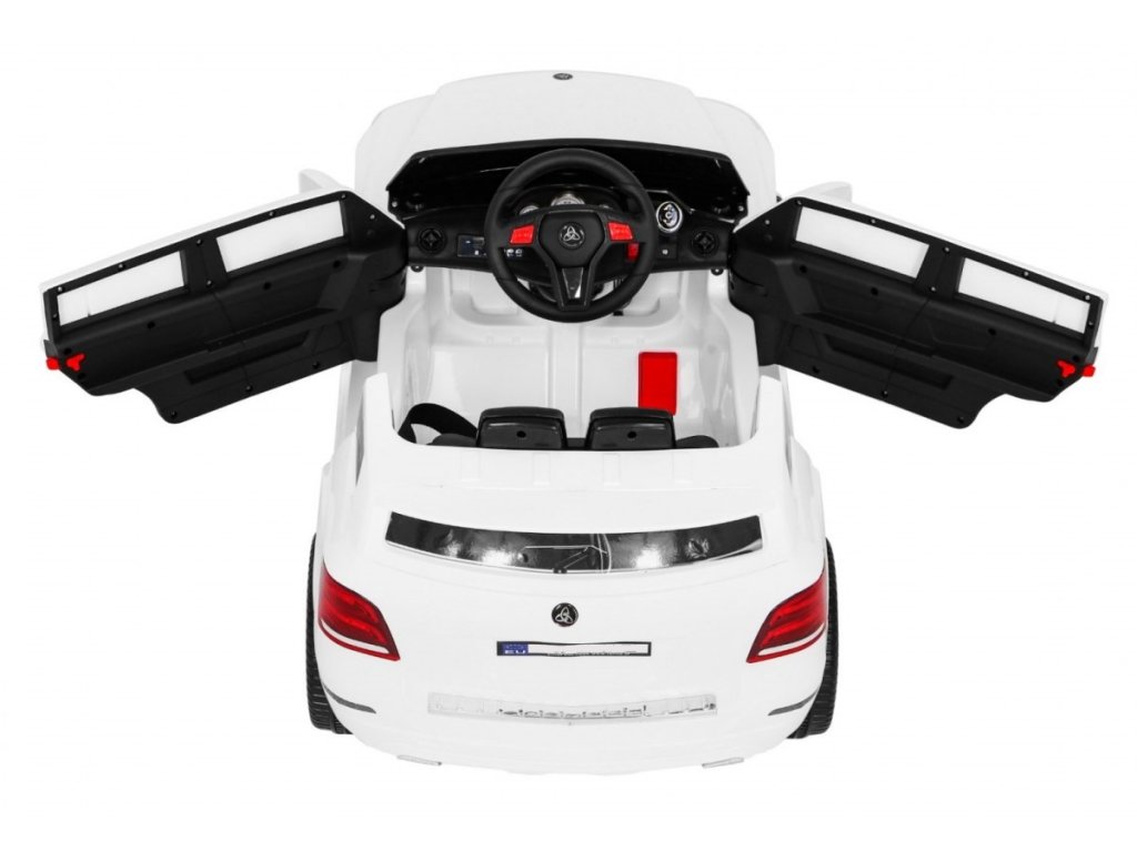 Pohodlne tvarované sedadlo zaručuje ničím nerušenú jazdu, ktorú dopĺňajú zvukové aj svietiace efekty . Hudobný panel je vybavený vstupom MP3, SD, USB a AUX . Karoséria sa pýši prednými aj zadnými LED svetlami a zadnými tlmičmi nárazov. Autíčko je vybavené plastovými kolesami a plastovou sedačkou.