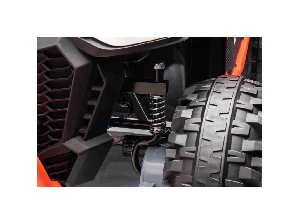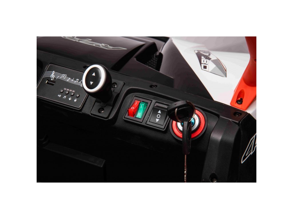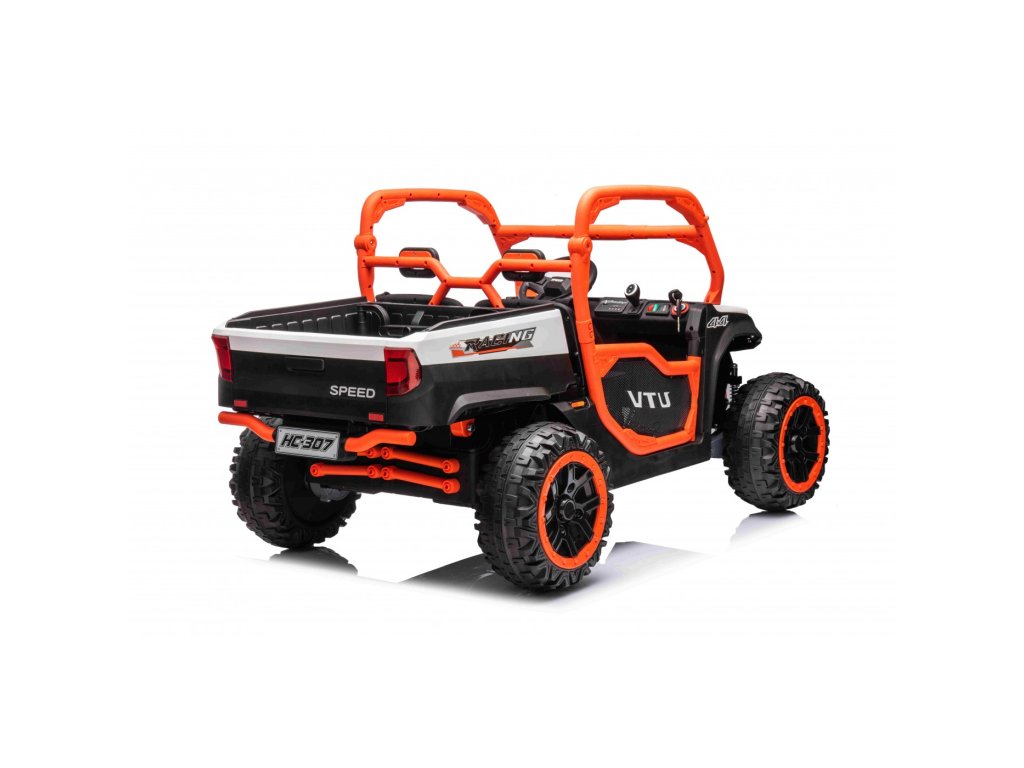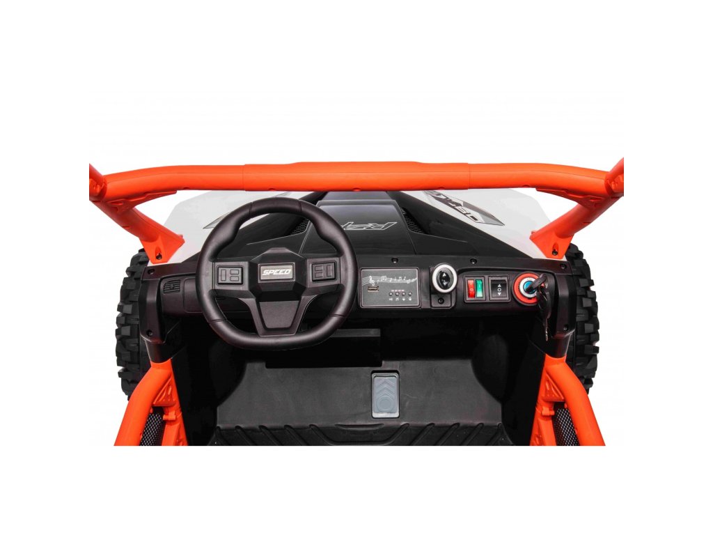 Detské elektrické autíčko UTV Racing má štyri výkonné elektrické motory s celkovým výkonom 300W a penové EVA kolesá .