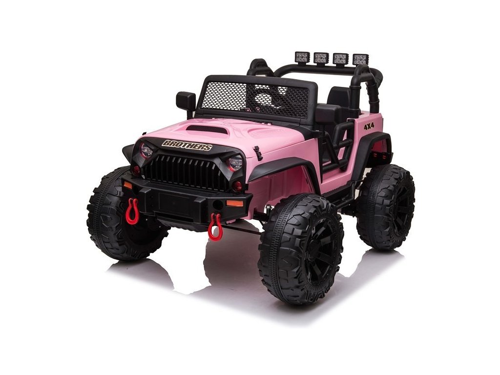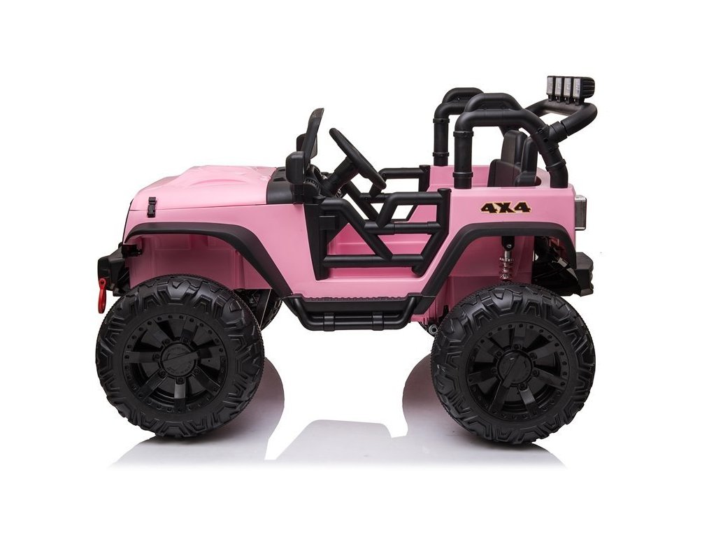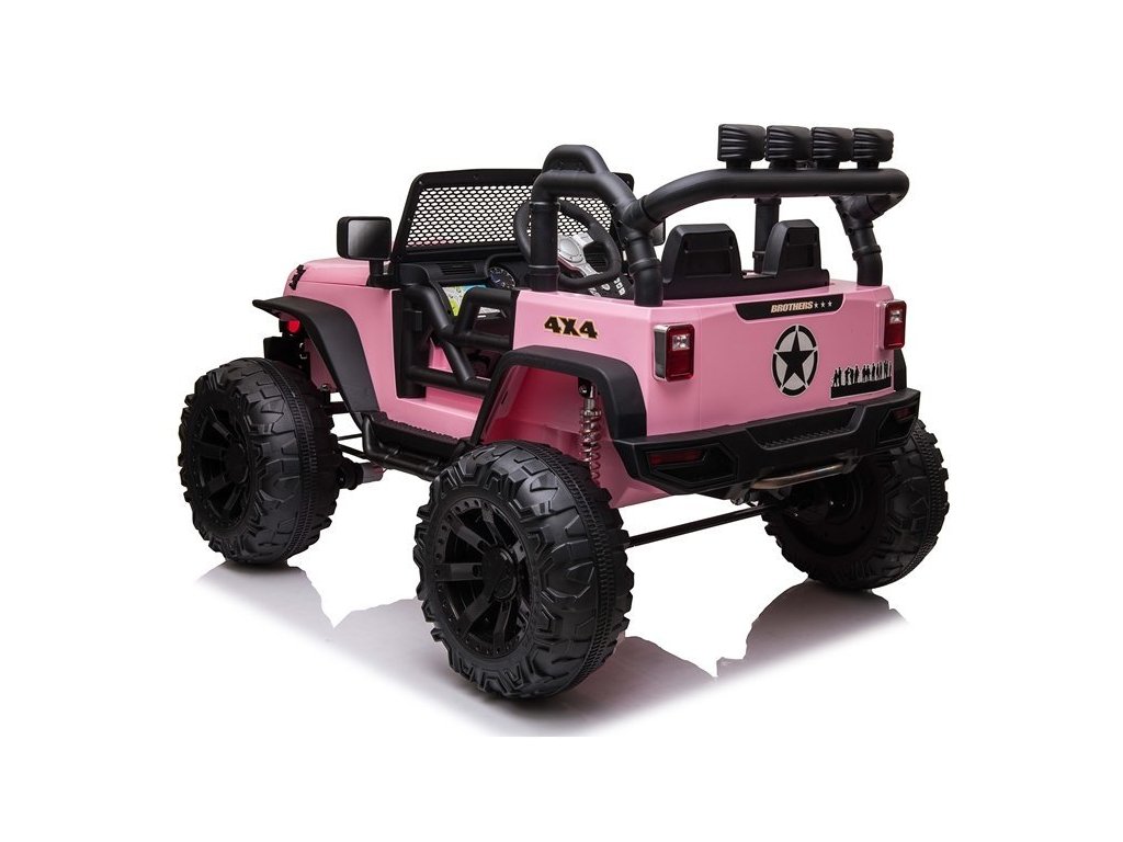 O bezpečnosť sa postarajú bezpečnostné pásy . Jeep sa rozbieha aj zastavuje plynulo a pri akomkoľvek manévroch nešklbe. Dieťa môže vyraziť 3 rýchlosťami od 3 do 5 km/h. Autíčko sa ovláda pomocou plynového pedála a jazdu môžu kontrolovať rodičia, vďaka 2,4G diaľkovému ovládaniu.