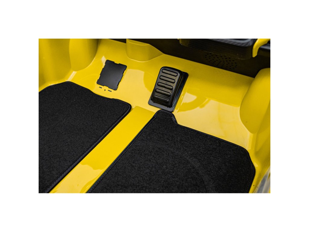 Detské elektrické auto Lamborghini Revuelto spája špičkový výkon, pohodlie a štýl verný originálu. Štyri výkonné motory po 200 W, veľké penové kolesá EVA a zadné odpruženie zaisťujú hladkú jazdu po rovnom povrchu aj miernom teréne. Dvojité sedadlo potiahnuté ekokožou s bezpečnostnými pásmi, LED osvetlenie a otváracie dvere dodávajú vozidlu realistický vzhľad a bezpečie.