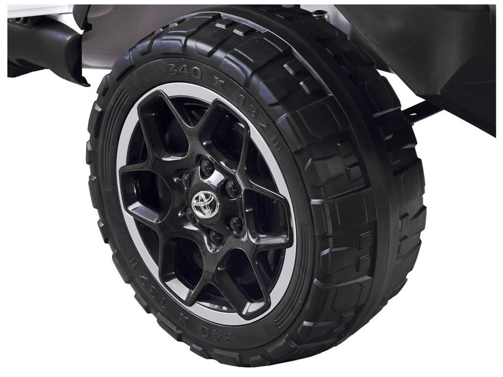 Detské elektrické autíčko licencovanej značky Toyota prichádza so štyrmi výkonnými elektrickými motormi a spoločne s Eva kolesami zvládne rôzny terén.