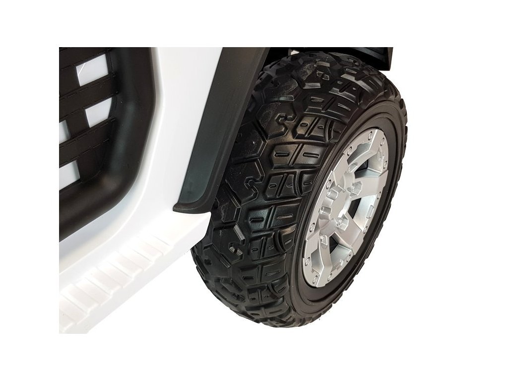 Medzi ďalšie výhody jeepu patrí veľká kožená sedačka z mäkkej ekologickej kože s bezpečnostnými pásmi. Vozidlo sa ovláda pomocou plynového pedála a jazdu môžu kontrolovať rodičia, vďaka diaľkovému ovládaniu. Rozjazd aj zastavenie je plynulé, takže nedochádza k šklbnutiu. Autíčko sa pýši nosnosťou až do 50 kg, takže môžete zviezť aj svojho kamaráta či súrodenca.