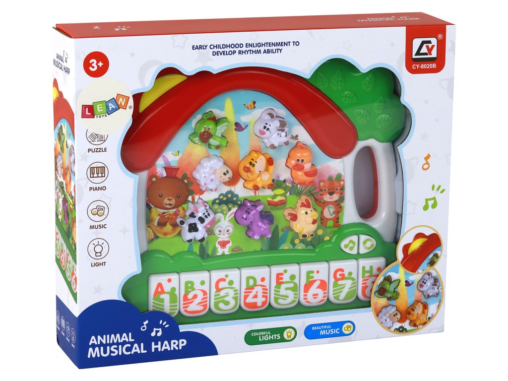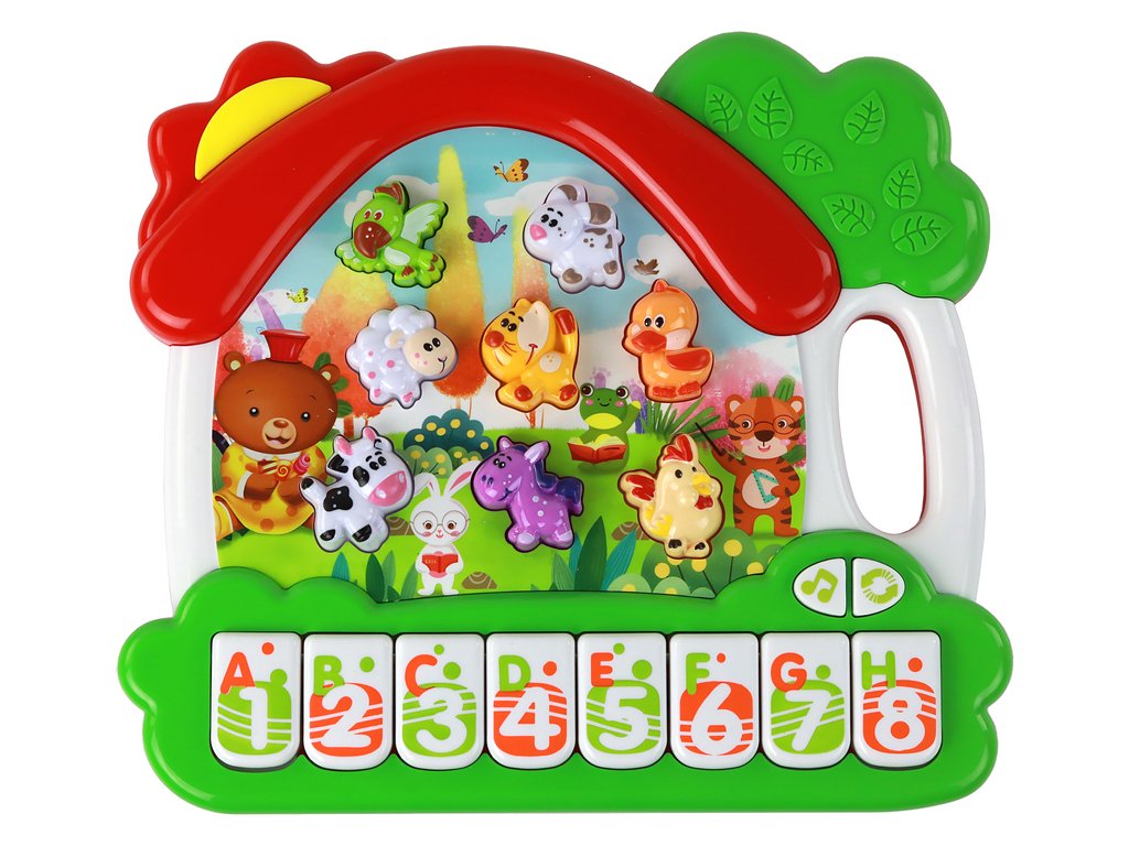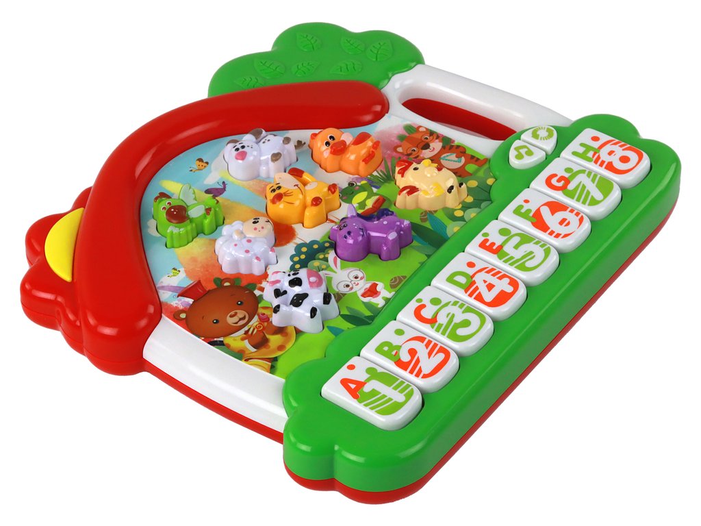 Na klavíri sú klávesy označené písmenami od A do H, čo uľahčuje učenie anglickej abecedy. Každé písmeno je spojené s konkrétnym zvieraťom a príslušným zvukom. Dieťa tak nielen spoznáva písmená, ale tiež sa učia ich správnej výslovnosti a spojeniu s konkrétnymi zvieratami.