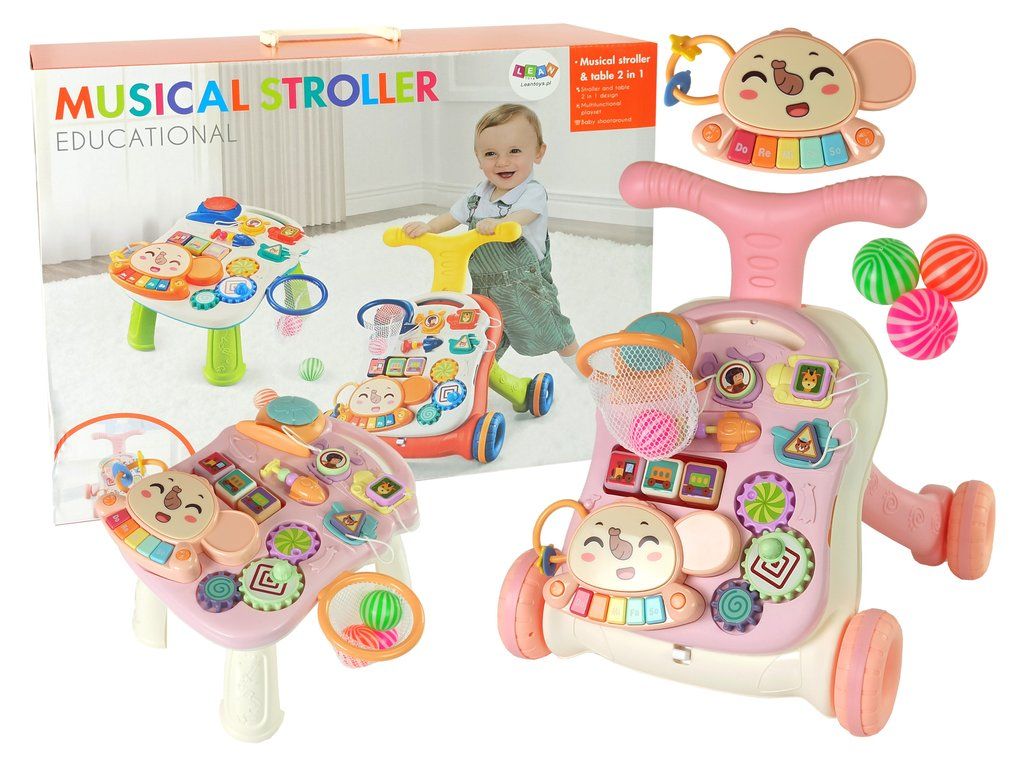 Detské interaktívne chodítko a stolček odporúčame všetkým batoľatám starších 6 mesiacov, je skvelým pomocníkom pri učení samostatnej chôdze. Interaktívne chodítko a stolček je navrhnutý s ohľadom na najmenšie deti. Ak chcete, aby si vaše dieťa hralo na mieste, môžete zablokovať zadné kolesá a naliať do nádoby vodu, aby bola hračka stabilná. Ďalšou výhodou sú silikónové kolieska na chodítku, ktoré bránia pohybu. Veľkou výhodou je, že kolieska majú blokádu, takže sa nemusíte báť o bezpečnosť dieťaťa. Po blokáde zostane chodítko na svojom mieste.