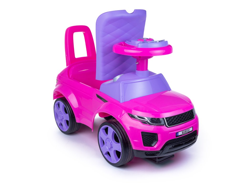 Ružové odrážadlo je z veľmi ľahkej konštrukcie, čo uľahčuje riadiť. Vo veľkej, a predovšetkým mäkkej sedačke je úložný priestor pre malé predmety dieťaťa, napríklad hračky, ktoré si chce vziať so sebou na prechádzku. Pohodlné operadlo pripevnené k sedadlu zaistí, že si batoľa pri hraní udržuje rovné držanie tela a tiež sa cíti pohodlne. Veľké, široké kolesá vám umožnia zvoliť rôzne povrchy, vďaka ktorým bude auto jazdiť doma aj v záhrade. Nosnosť je 27 kg, a preto bude určite slúžiť vášmu dieťaťu po dlhú dobu.