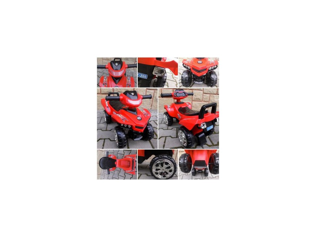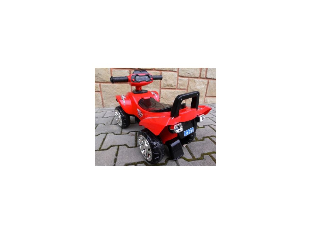 Červené odrážadlo v tvare štvorkolky je stavané na jazdu vonku aj doma.