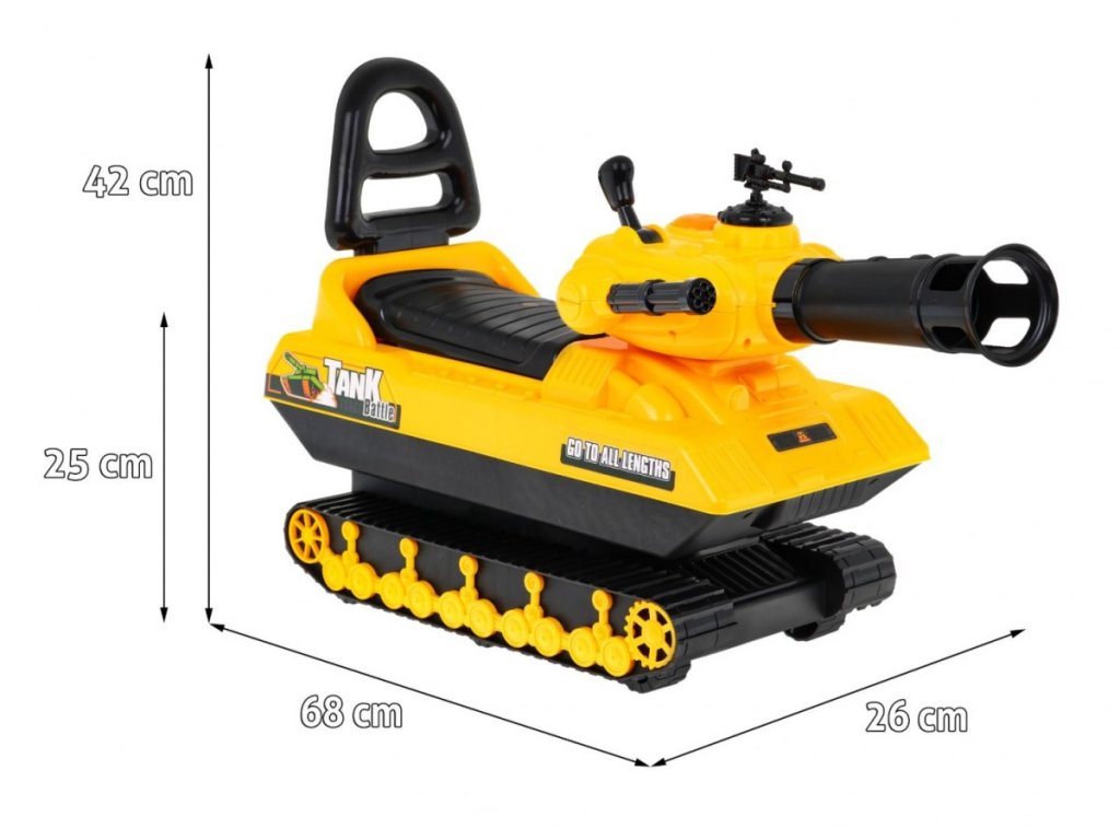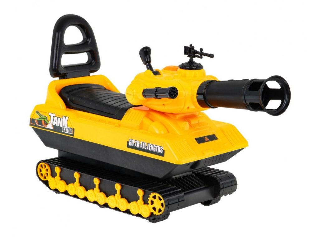 Detské odrážadlo tank je pre všetky deti s nosnosťou do 25 kg. Má batožinový priestor, ktorý obsahuje navyše odnímateľnú nádobu. Je možné ju využiť ako nočník či batožinový priestor. Odrážadlo je doplnené otáčacou vežičkou, z ktorej je možné vystreliť loptičky (sú súčasťou balenia).
