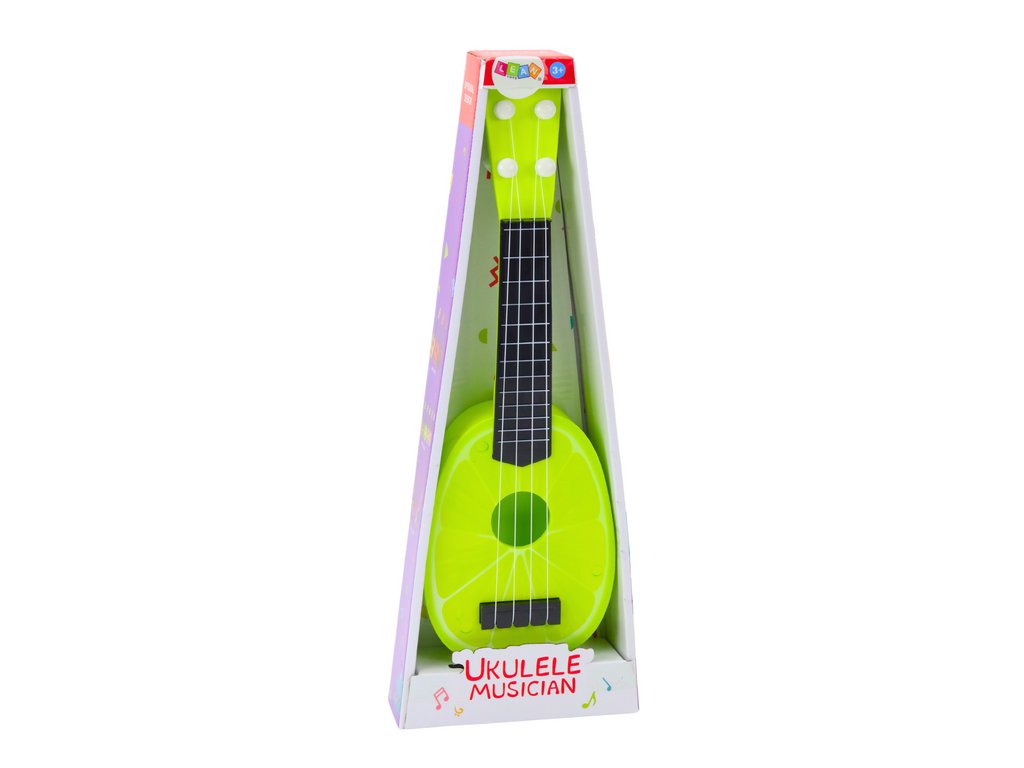Detské ukulele je skvelou voľbou pre malých hudobníkov, ktorí chcú objavovať svet hudby. Tento ľahký nástroj so štyrmi nylonovými strunami je navrhnutý tak, aby bol ľahko ovládateľný a príjemný pre malé ruky. Vyrobené z odolného a bezpečného plastu . Atraktívny dizajn v tvare limetky dodáva nástroju hravý vzhľad, ktorý deti nadchne a motivuje k ďalšiemu hudobnému rozvoju.