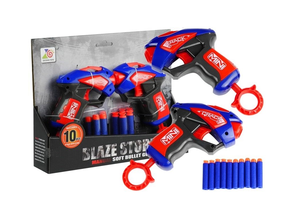 Rýchla a presná pištole pre deti, ktorá sa nabíja 10 penovými projektily, ktoré nikomu neublíži. Sú mäkké a tupé, nehrozí teda žiadne zranenia. Pištoľ strieľa až do vzdialenosti 10 m. Pištoľ je príručné, ľahká a odolná. Pod spúšťa má zásobník na 4 strely. S touto pištoľou sa dieťa nudiť nebude, usporiadajte poriadnu strieľačku u Vás doma, určite sa zapojí aj oteckovia a vráti sa do detských rokov spolu so svojimi synmi. V ponuke máme viac druhov pištoľou značky Blaze Storm.