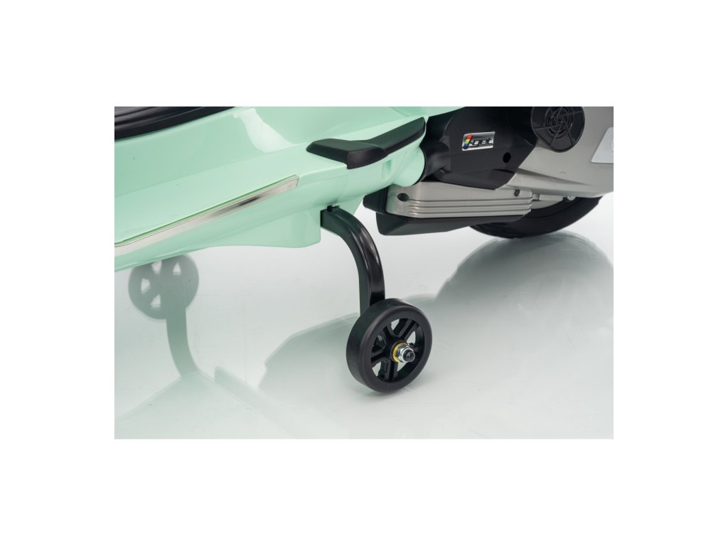 Kto by nepoznal skúter značky Vespa? Tento legendárny skúter môže riadiť aj Vaše dieťa, a to vďaka tomuto licencovanému modelu. Skúter má kvalitné sedadlo potiahnuté mäkkou ekologickou kožou a mäkké kolesá EVA. K tomu všetkému krásne predné a zadné LED svetlá a dokáže prehrávať MP3 súbory, takže si dieťa môže za jazdy vypočuť svoju obľúbenú pesničku a zároveň zdokonaľovať svoje vodičské schopnosti.