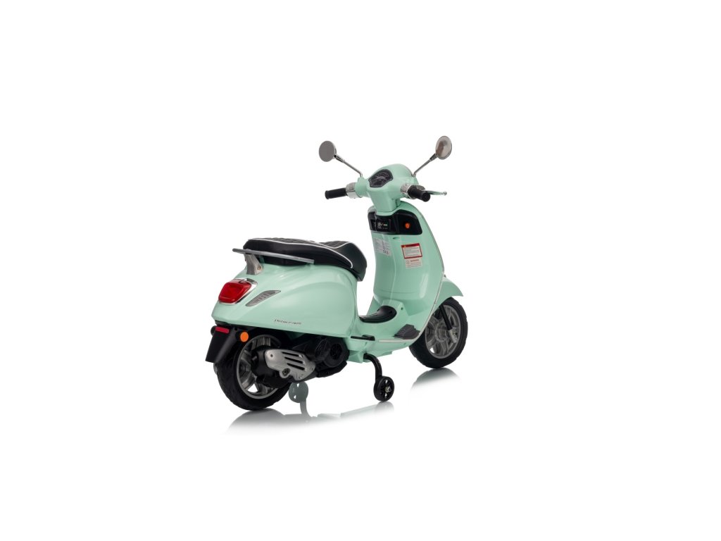 Vespa vydrží 1 hodinu senzačnej jazdy. Na bezpečie dieťaťa dbajú postranné kolieska a automatická brzda, ktorá zastaví, keď dieťa spustí nohu z plynového pedálu. Detský skúter je vhodný pre deti od 3 rokov.
