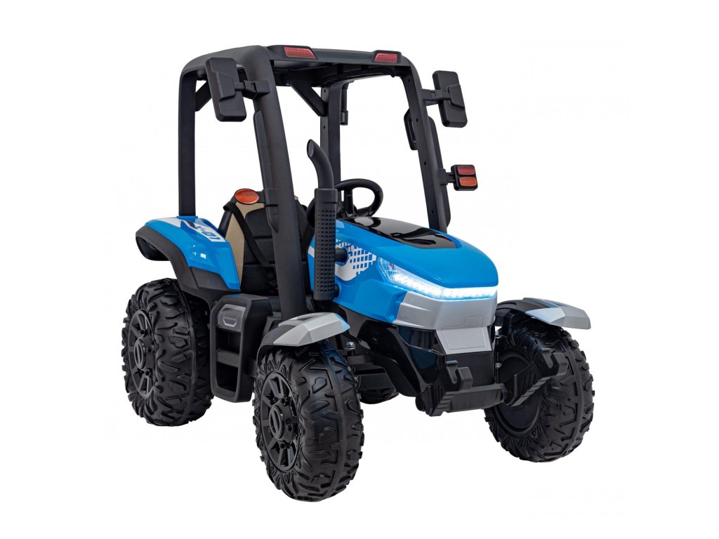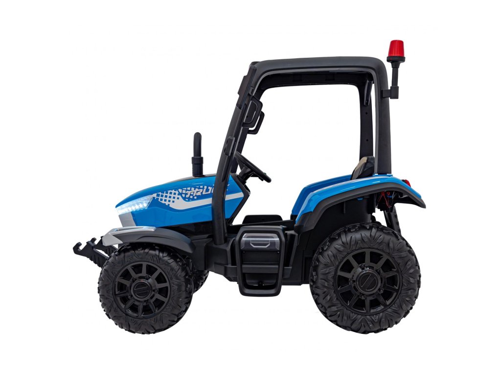 Detský elektrický traktor s prívesom má dva veľmi výkonné motory 200W a batériu s kapacitou 24V 7Ah. Traktor má predné a zadné LED svetlá a hudobný panel so vstupom USB, MP3 a s Bluetooth . Maximálna nosnosť traktora je 30 kg .