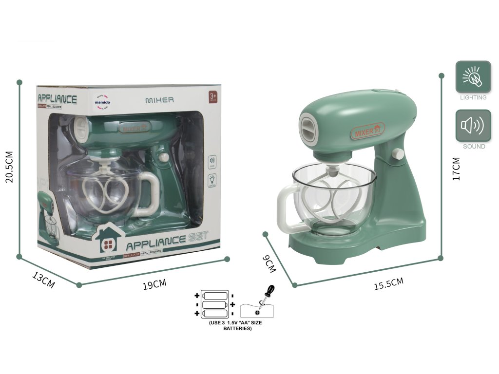 Mixér je navrhnutý tak, aby čo najviac pripomínal skutočný spotrebič. Disponuje odnímateľnou nádobou s držadlom, takže deti môžu „pripravovať“ svoje obľúbené dobroty. Hlava mixéra je výklopná, čo uľahčuje manipuláciu a vkladanie misky. O zábavu sa postarajú svetelné efekty a zvuky, ktoré napodobňujú skutočné mixovanie. Vďaka svojej veľkosti je hračka vhodná aj pre menšie deti od 3 rokov.