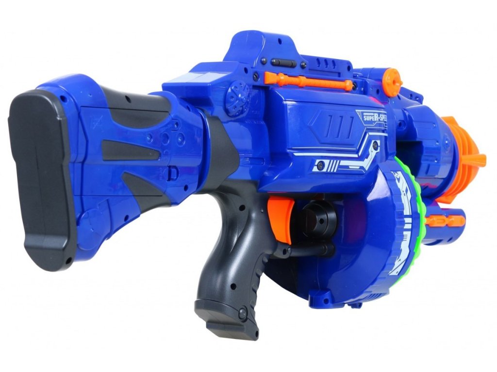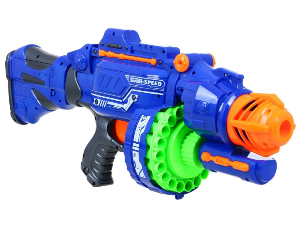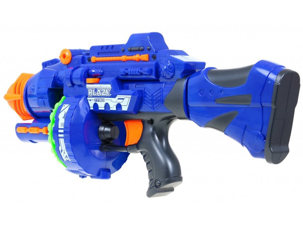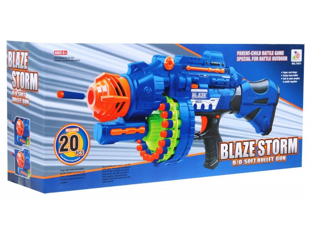 Extra rýchla a presná pištoľ pre deti, ktorá je nabíjaná 20 penovými projektilmi, ktoré nikomu neublížia. Sú mäkké a tupé, nehrozí teda žiadne zranenie. Pištoľ sa nabíja spredu a strieľa až 3 projektily za sekundu! Pištoľ strieľa až do vzdialenosti 10 m. Pištoľ je príručná, ľahká a odolná. Samopal je možné prerobiť na ručnú pištoľ. S touto pištoľou sa nudiť nebudete, usporiadajte poriadnu strieľačku u Vás doma, iste sa zapoja aj oteckovia a vrátia sa do detských rokov spolu so svojimi synmi. V ponuke máme viacero druhov pištolí značky Blaze Storm.